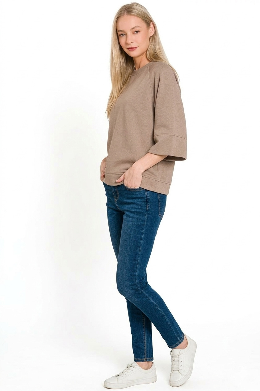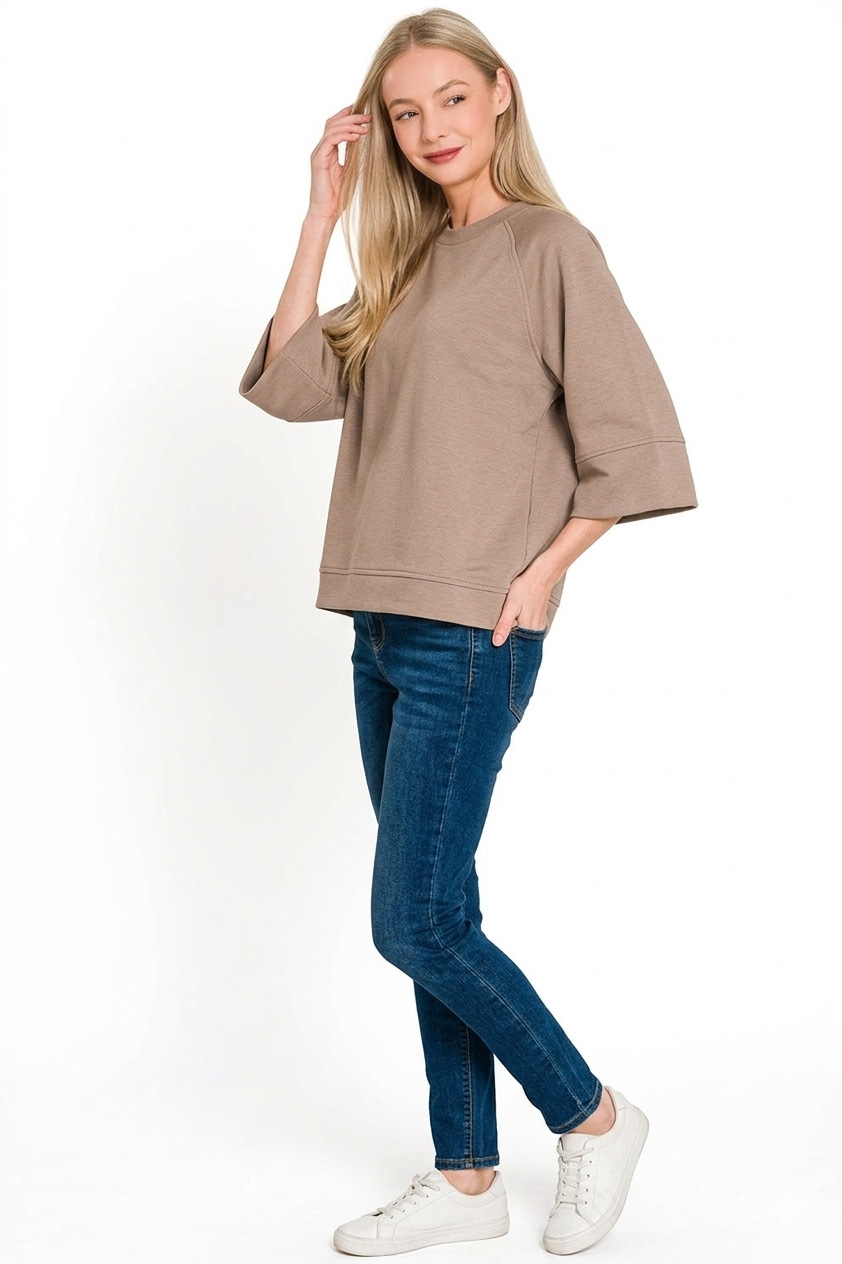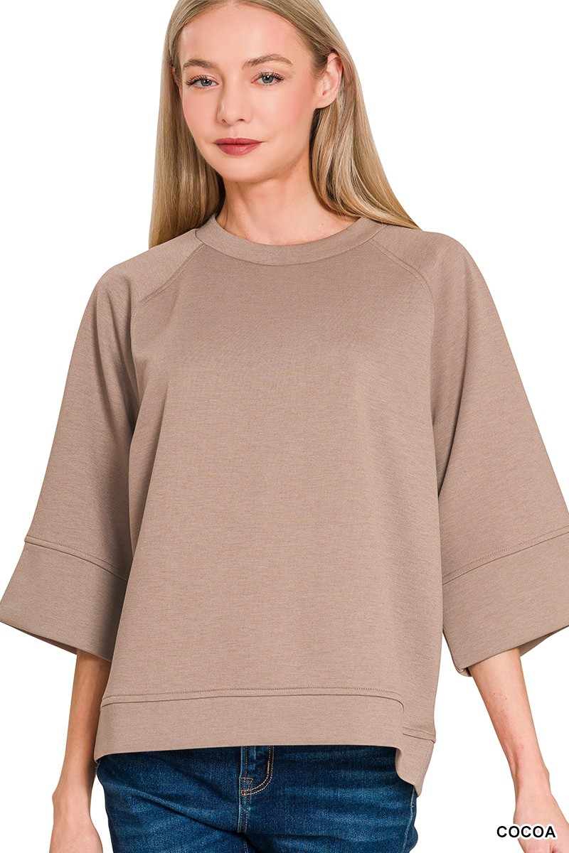 Zenana Scuba 3/4 Sleeve Pullover