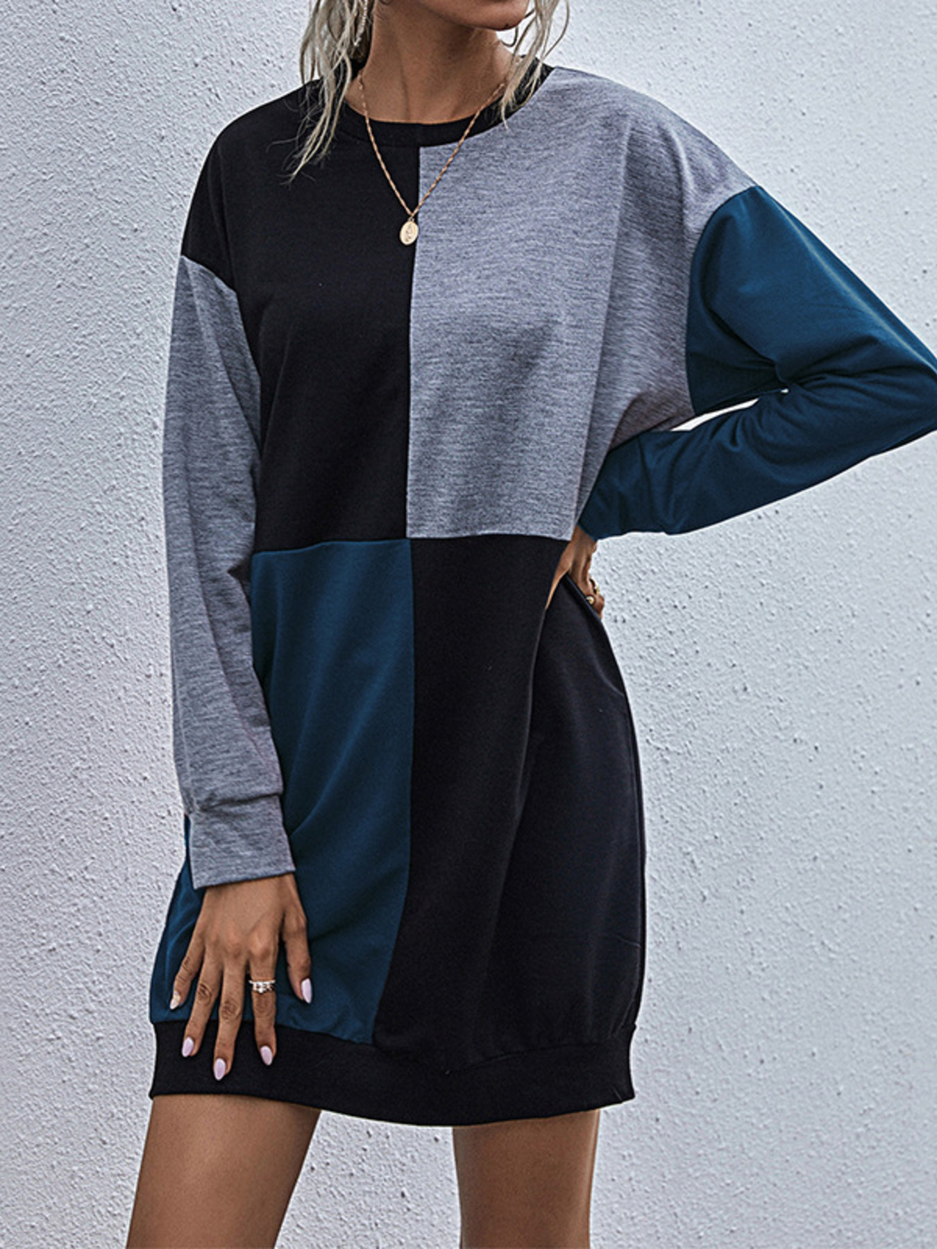 Color Block Casual Long Sleeve Mini Dress