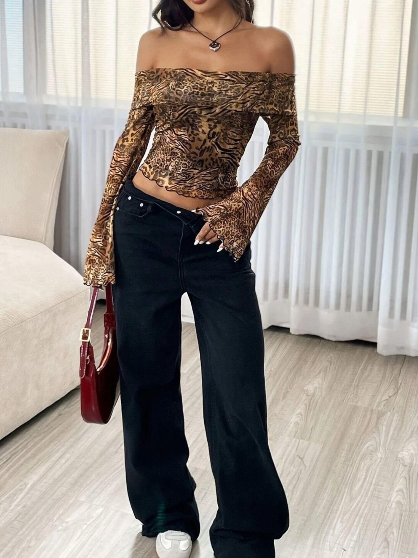 Leopard Print Off-Shoulder Top