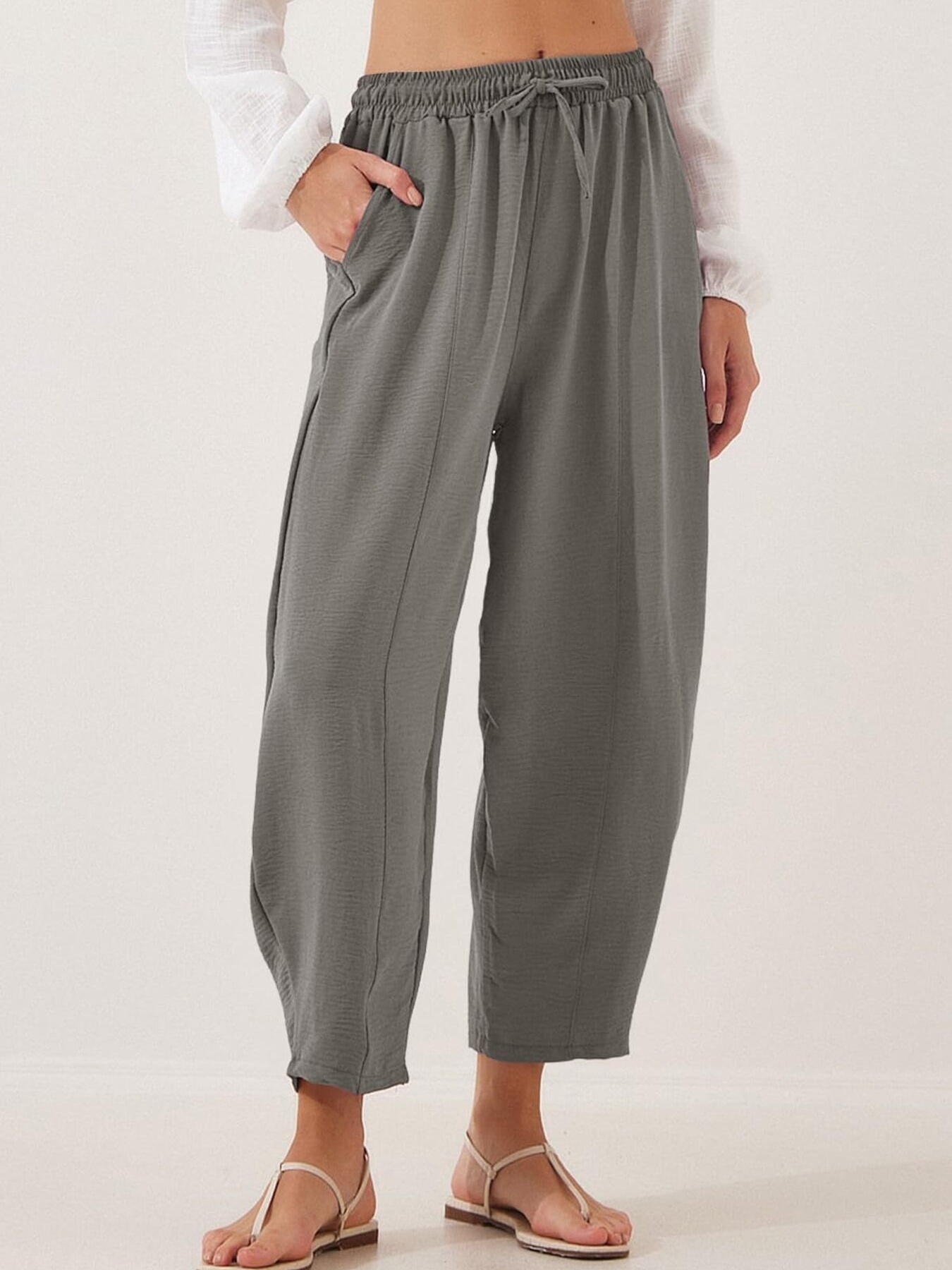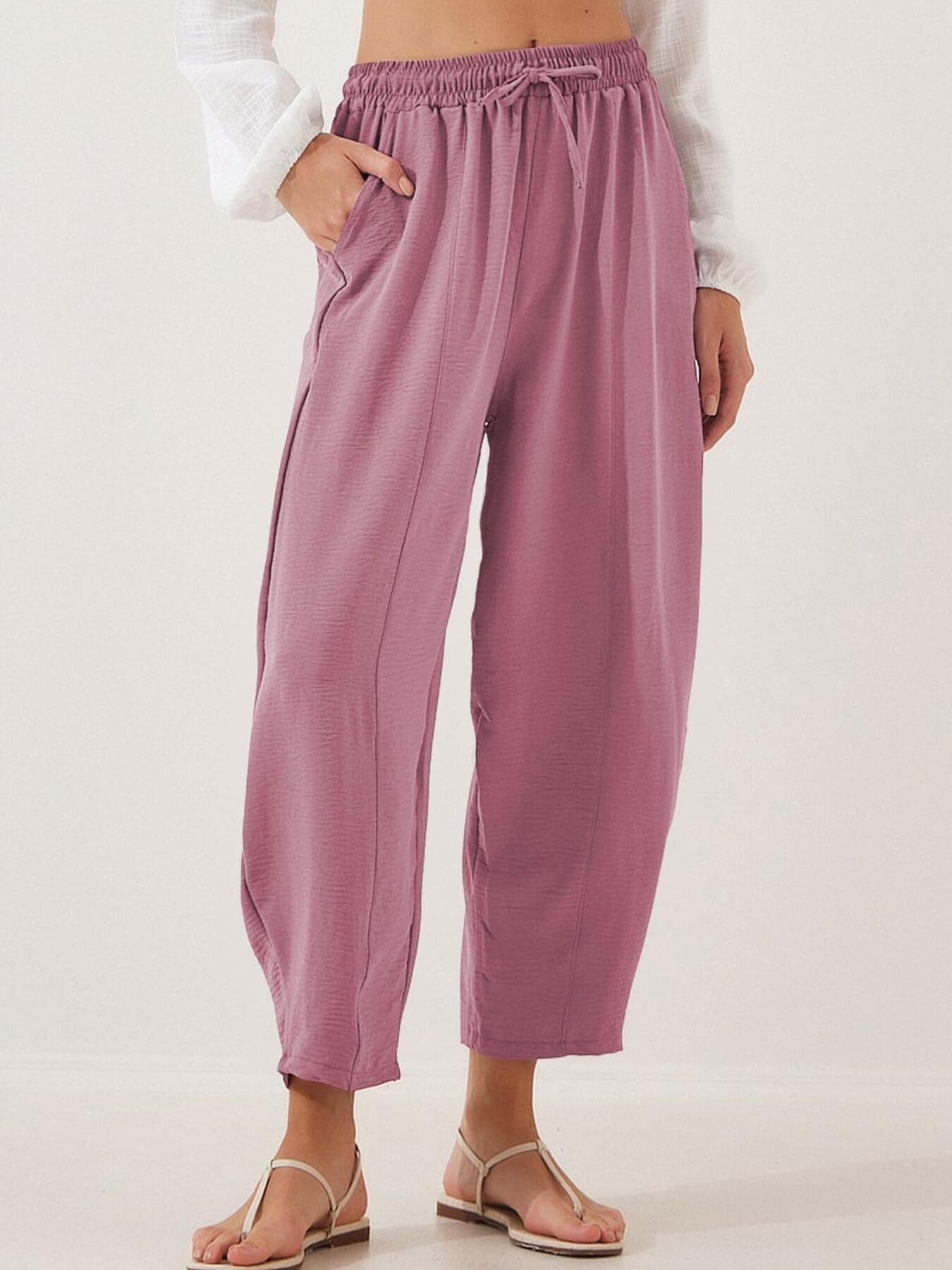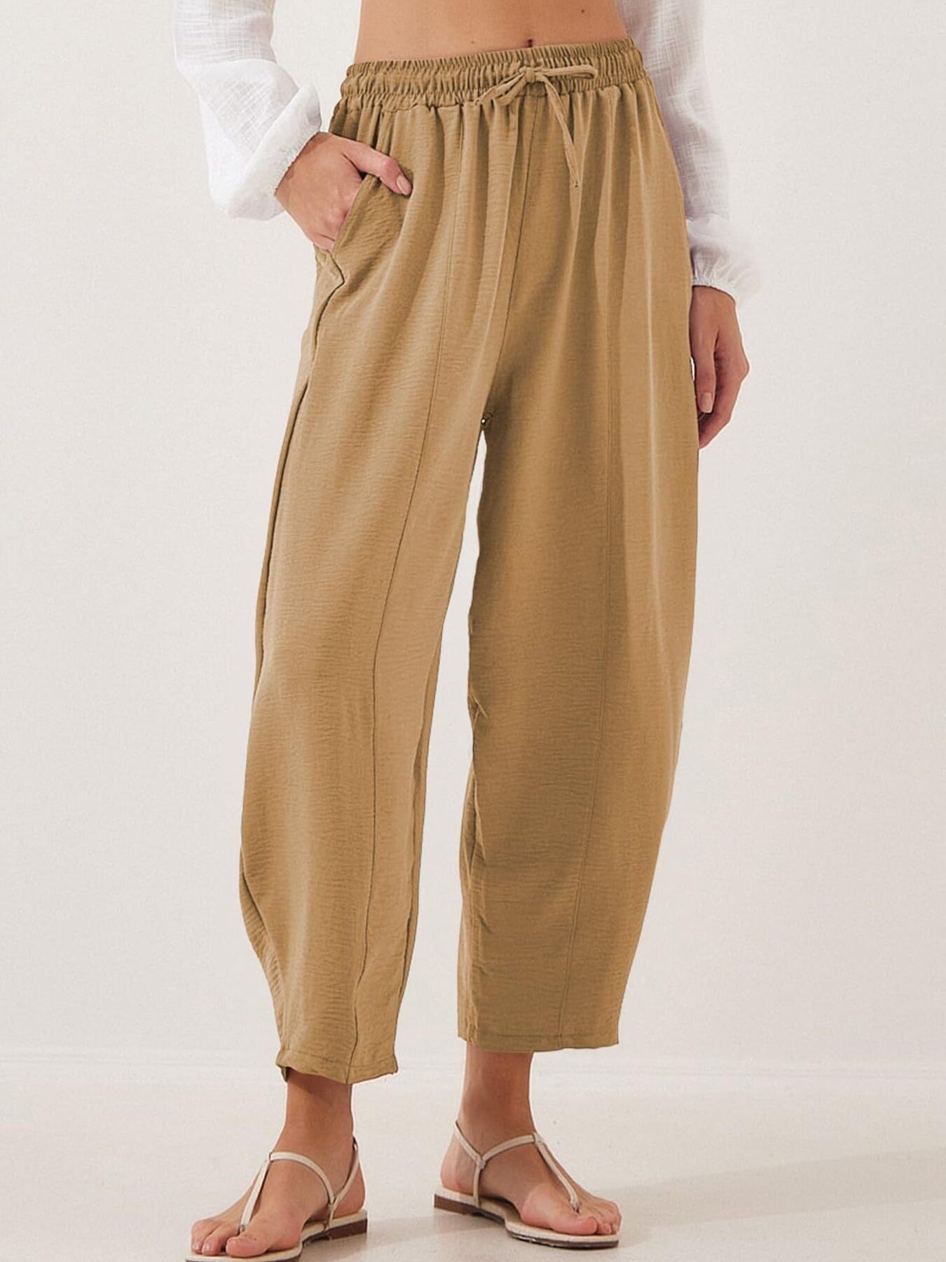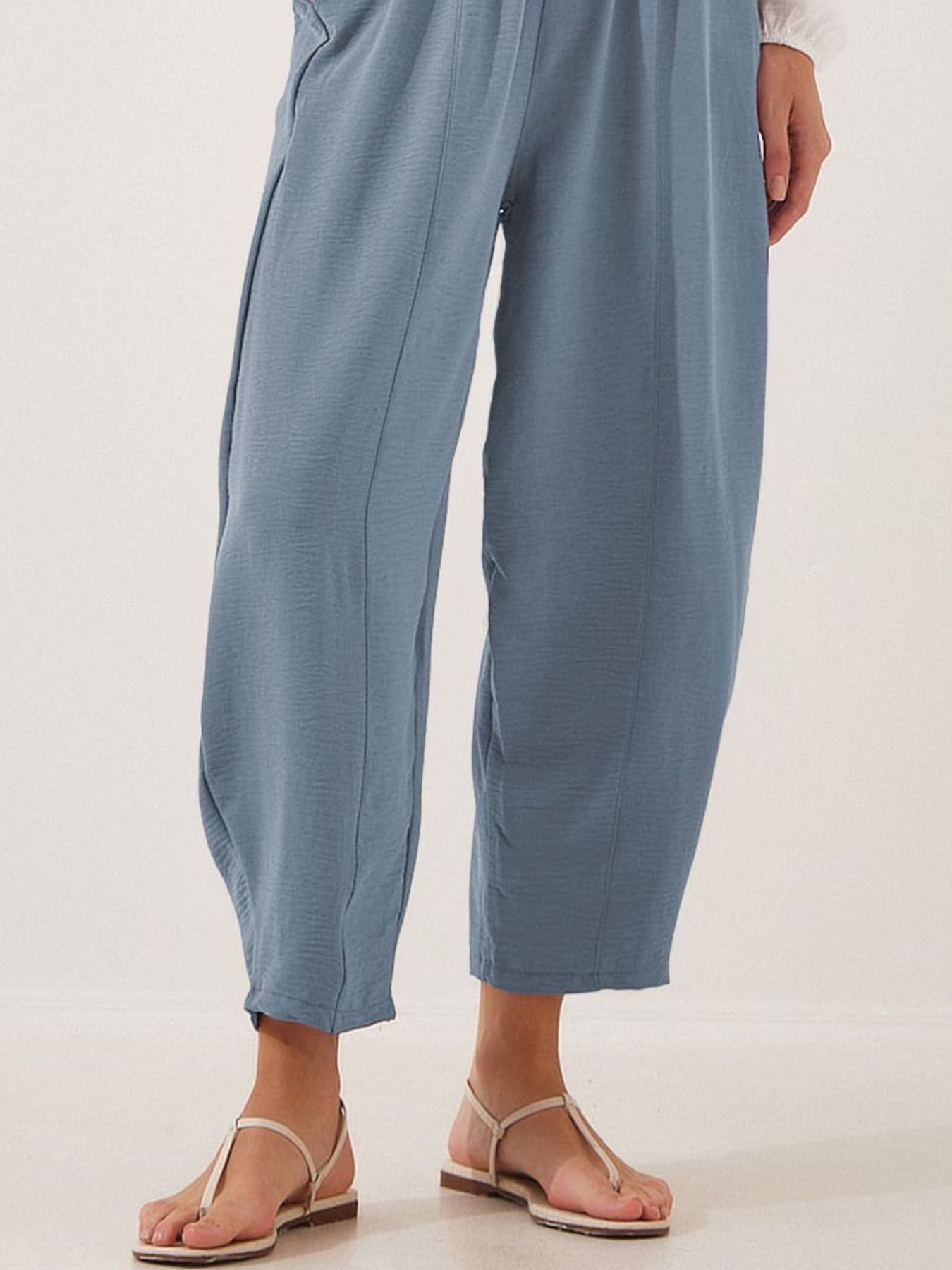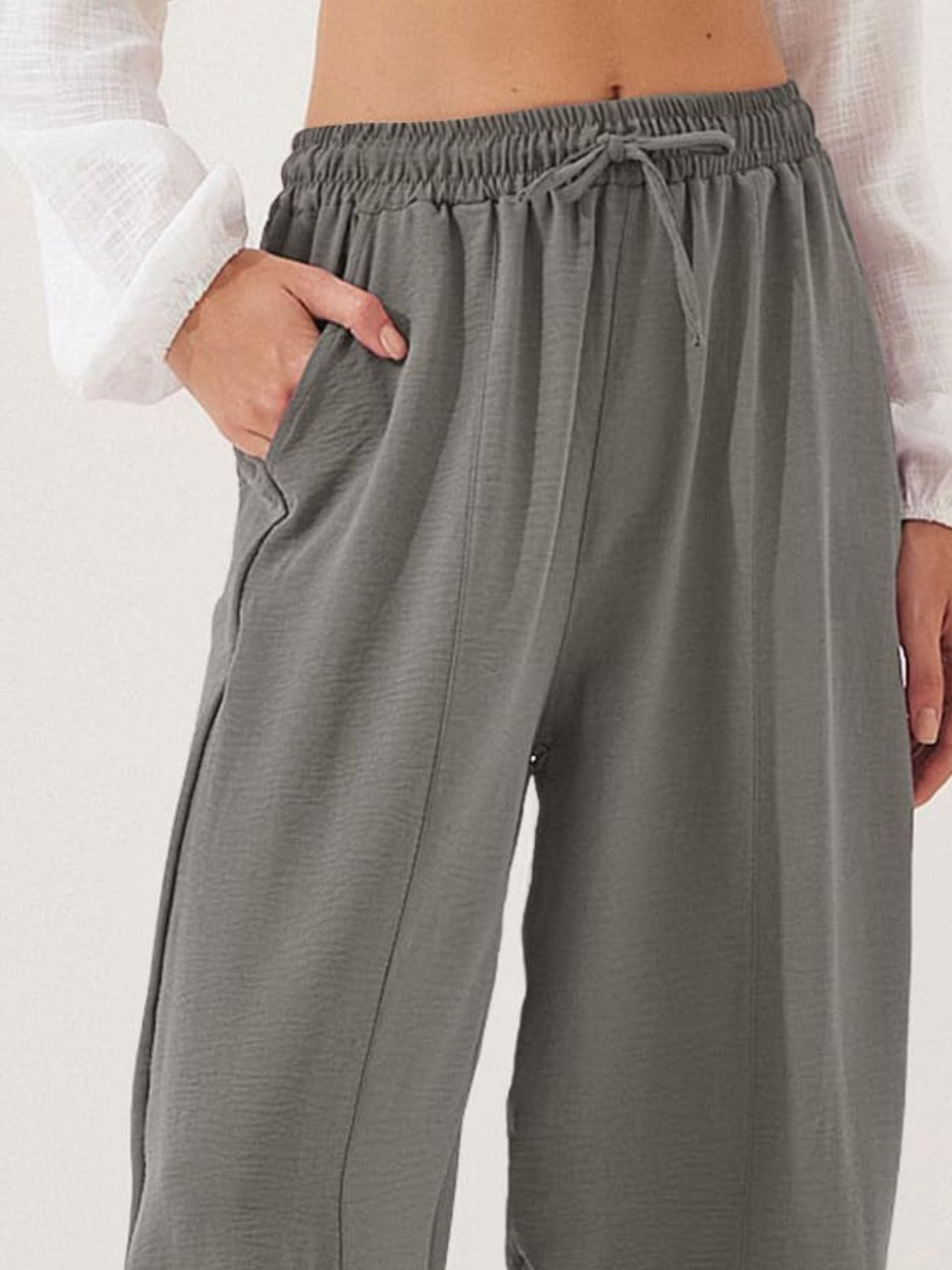 Full Size Drawstring Wide Leg Cropped Pants Plus Size