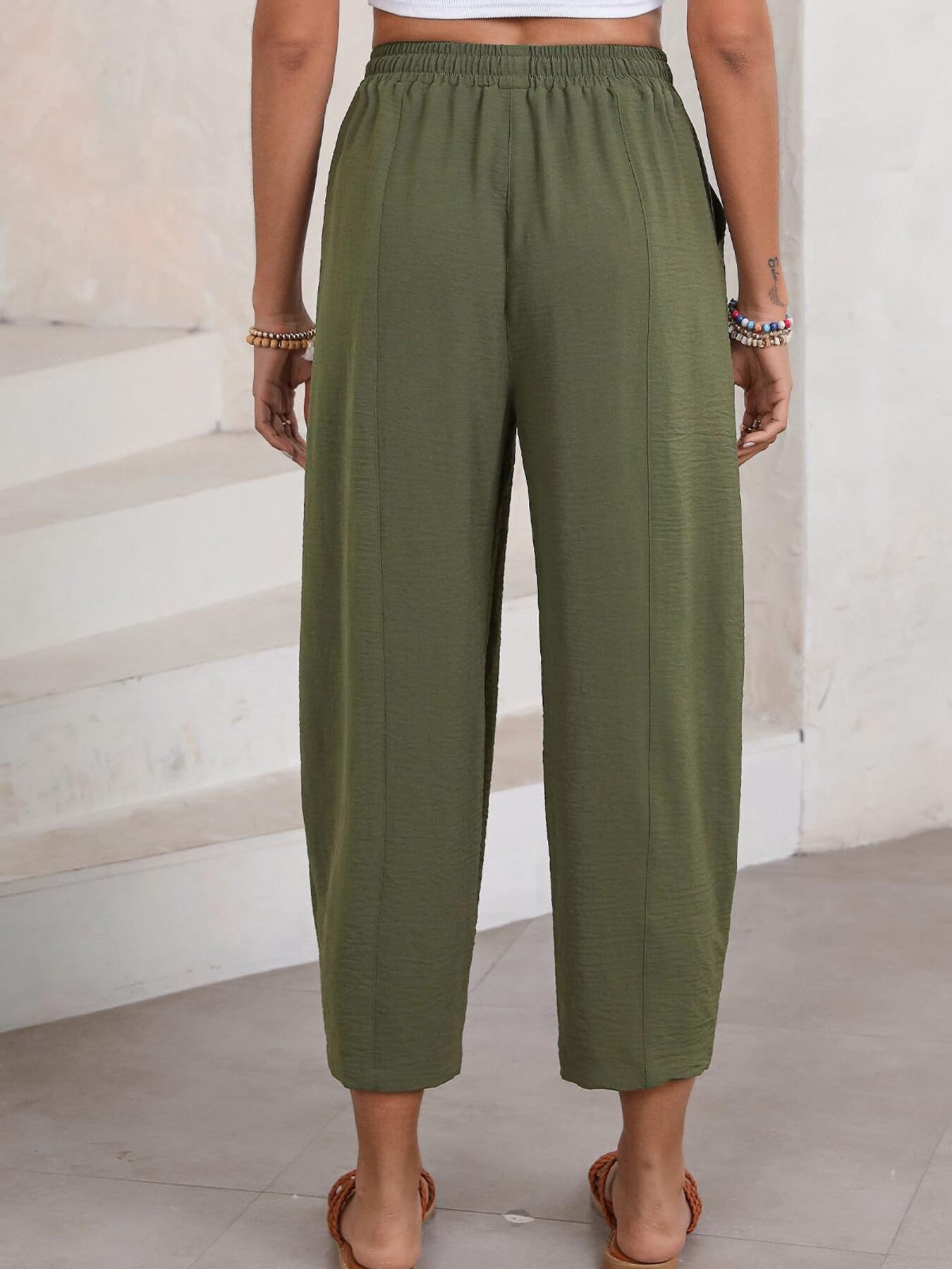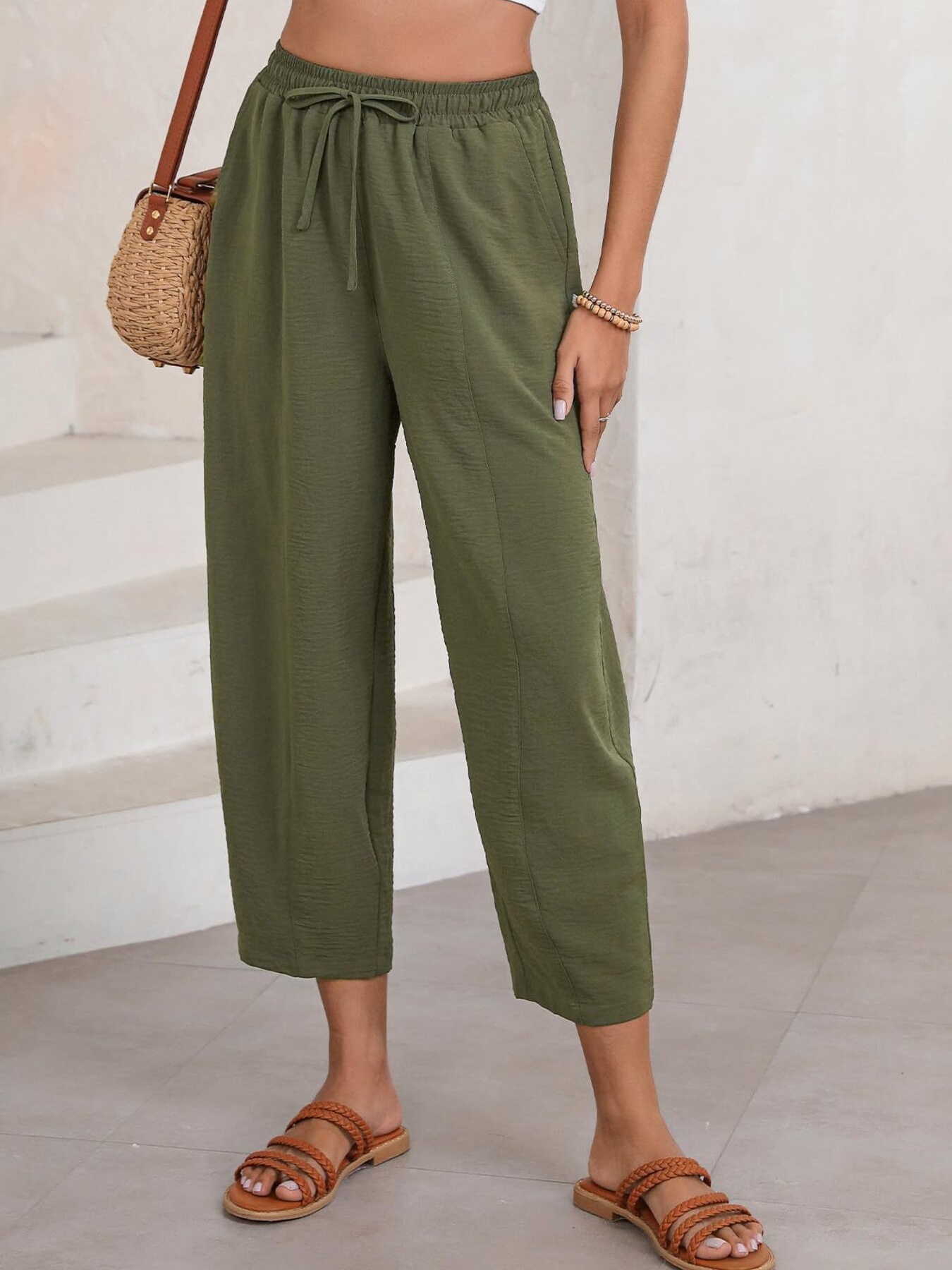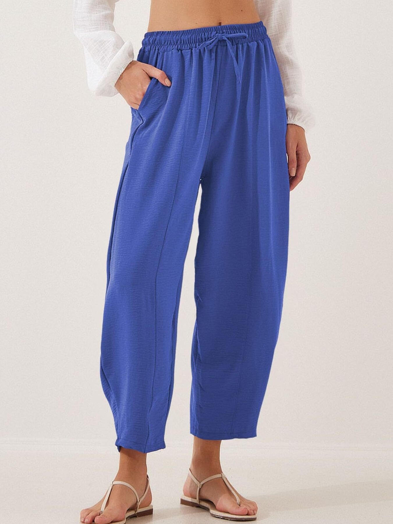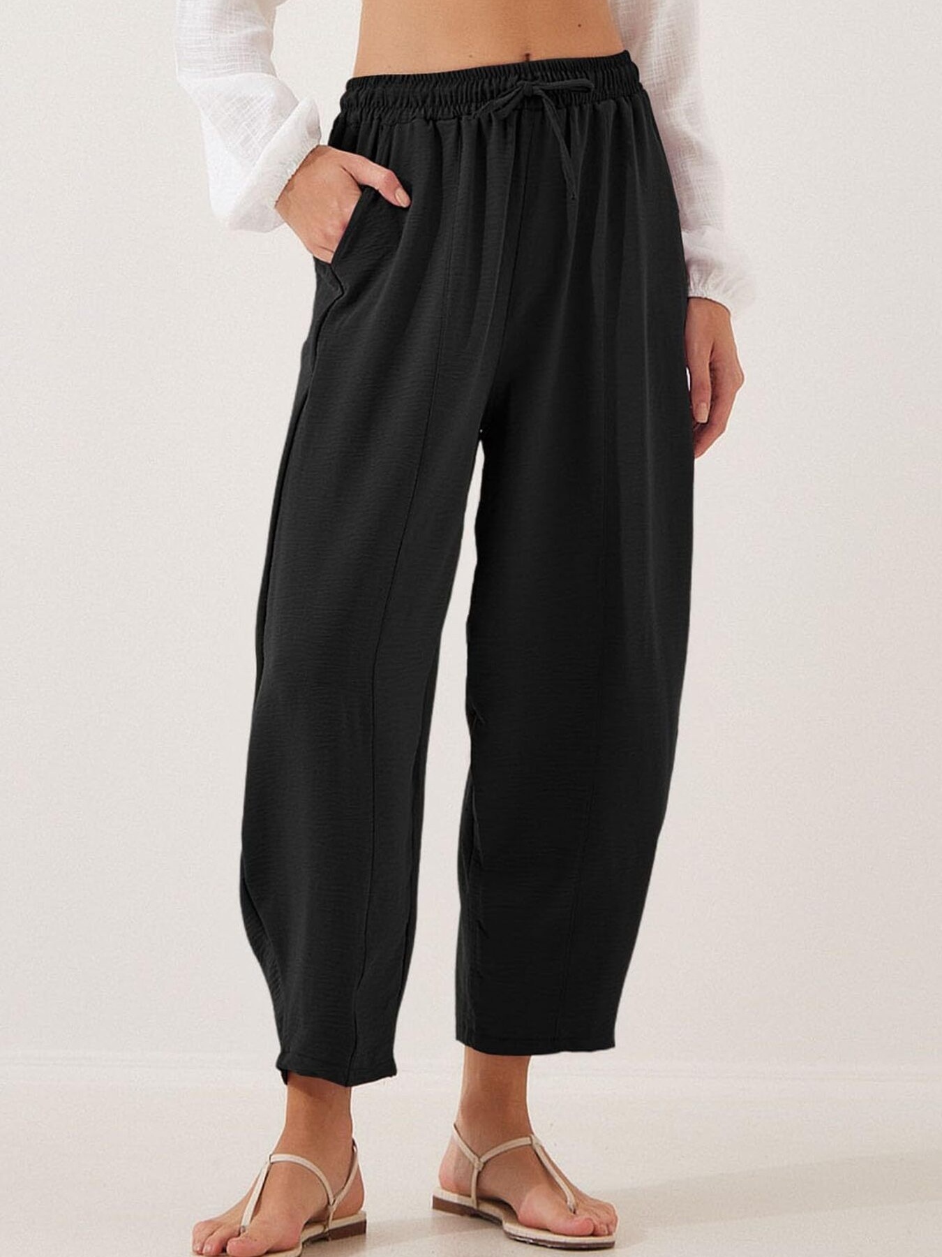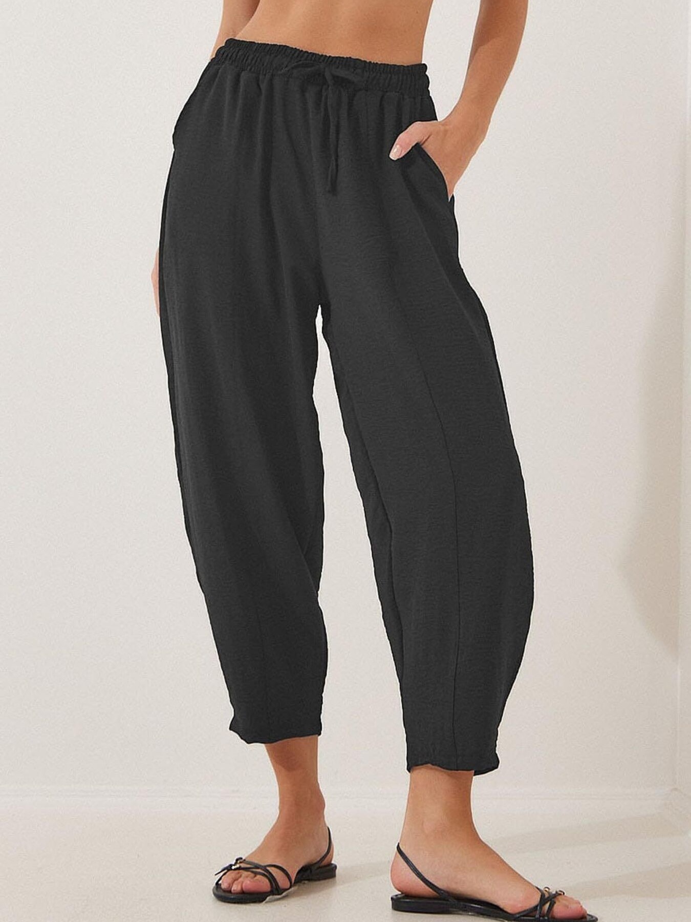Full Size Drawstring Wide Leg Cropped Pants Plus Size