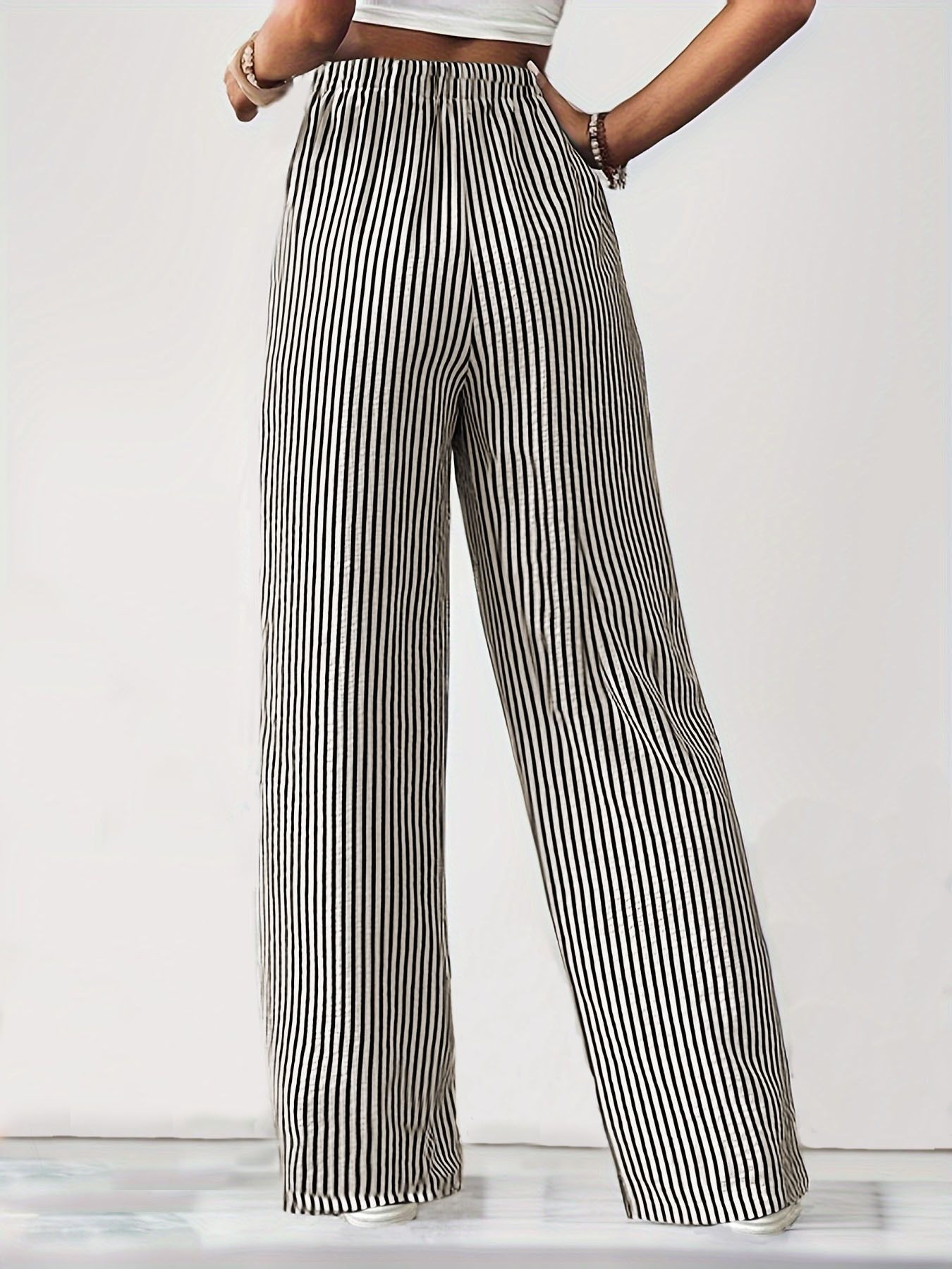 Striped High-Waisted Wide Leg Pants