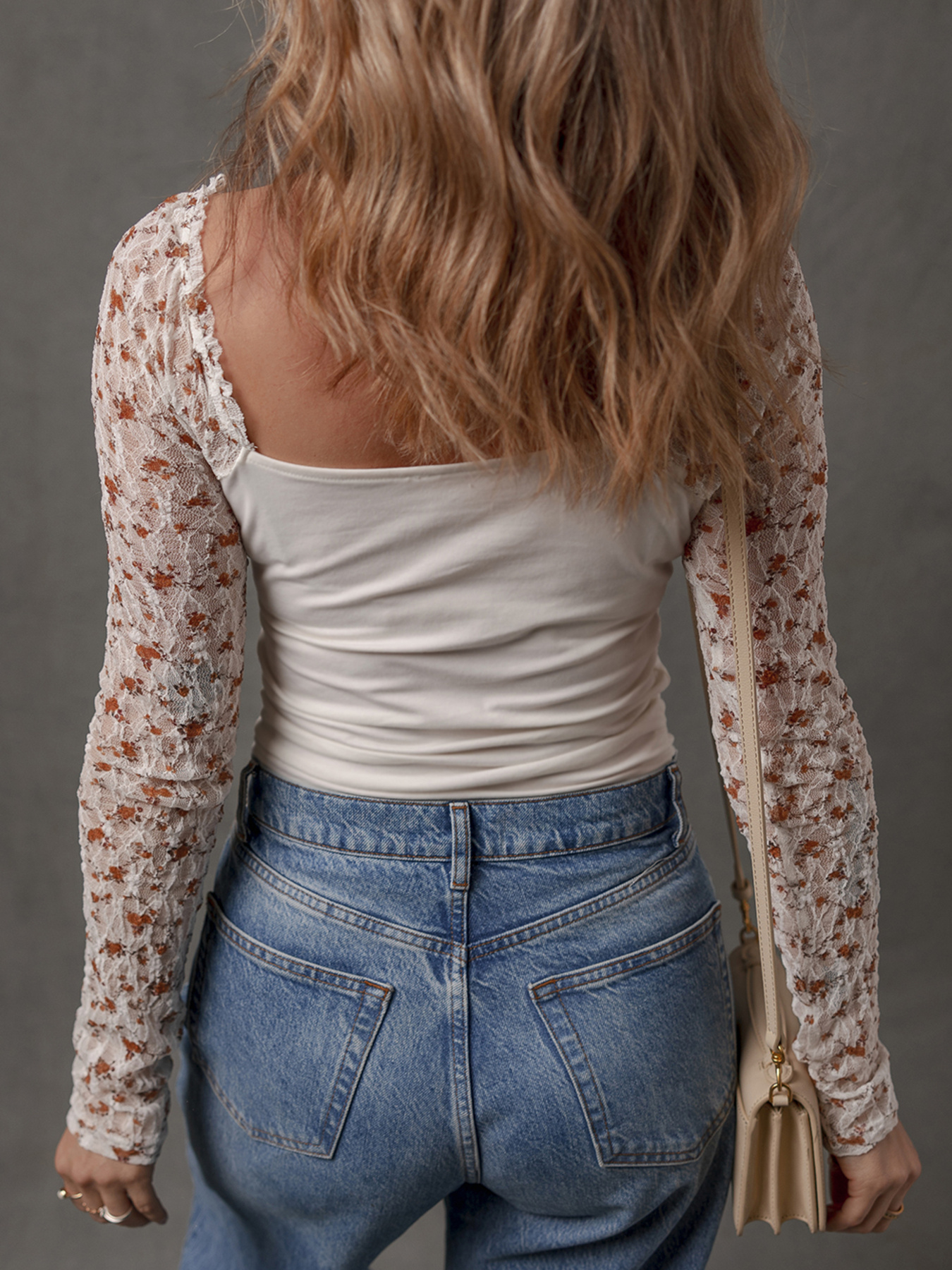 Floral Lace Patchwork Square Neck Long Sleeve Top