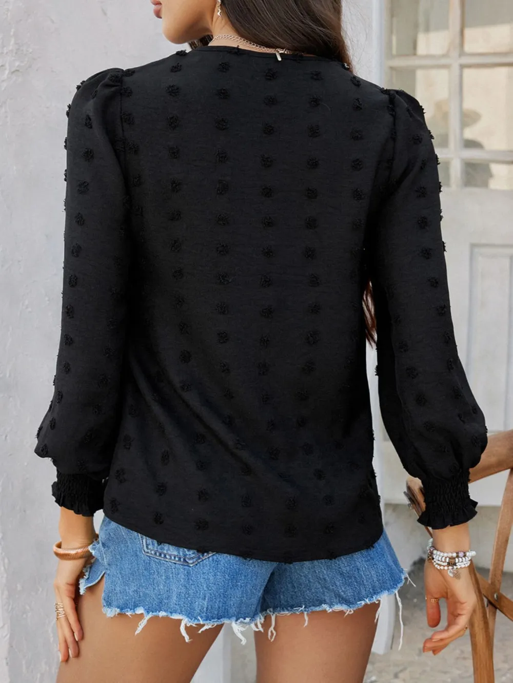 Devine Swiss Dot Lace Detail V-Neck Long Sleeve Blouse