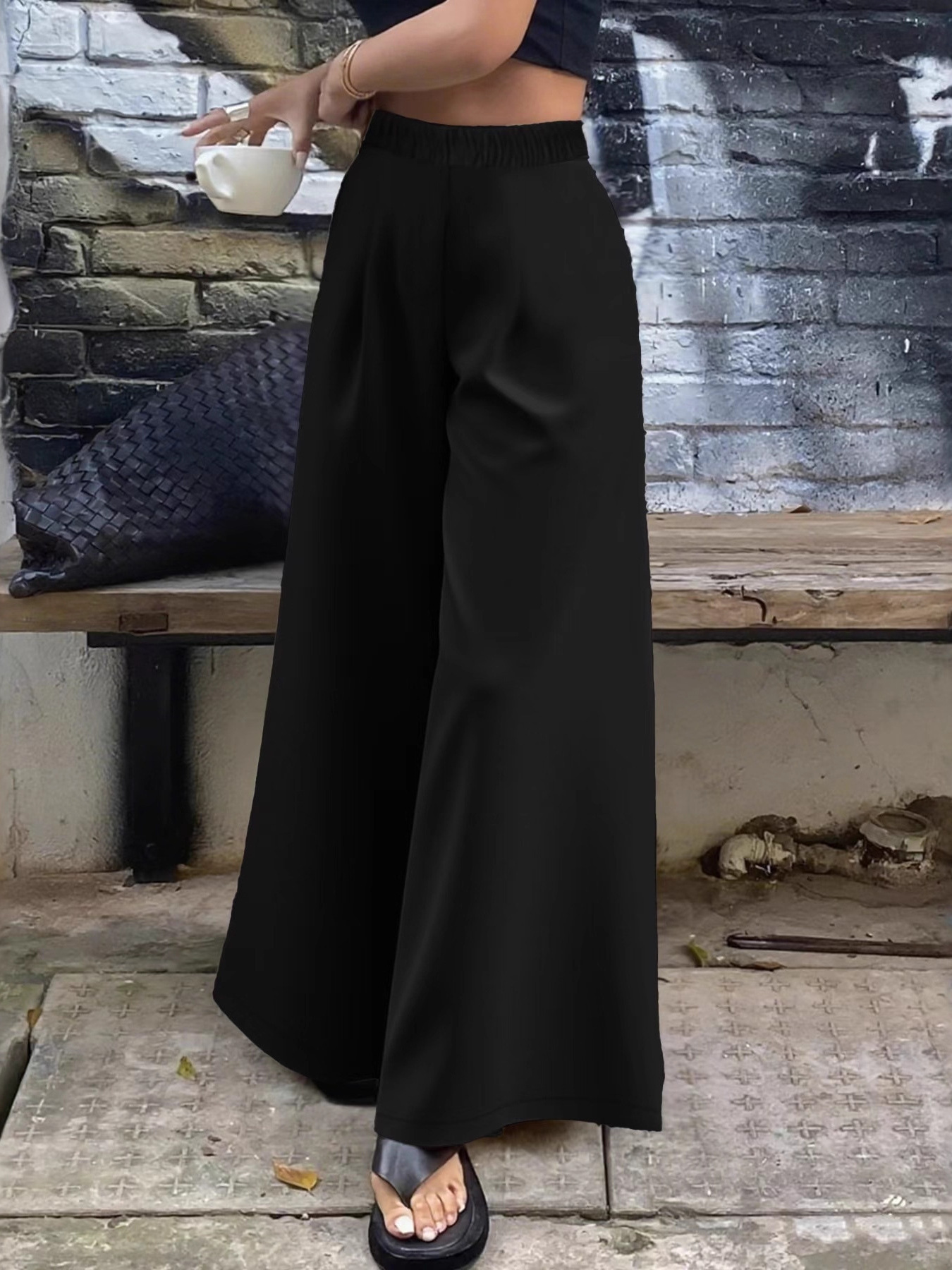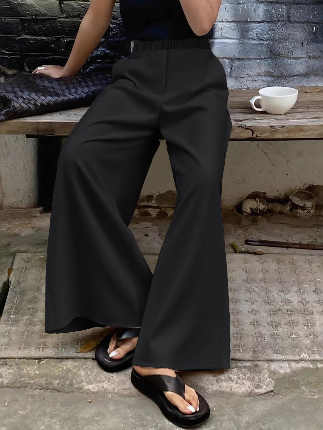 Plus Size Elastic Waist Wide Leg Pants