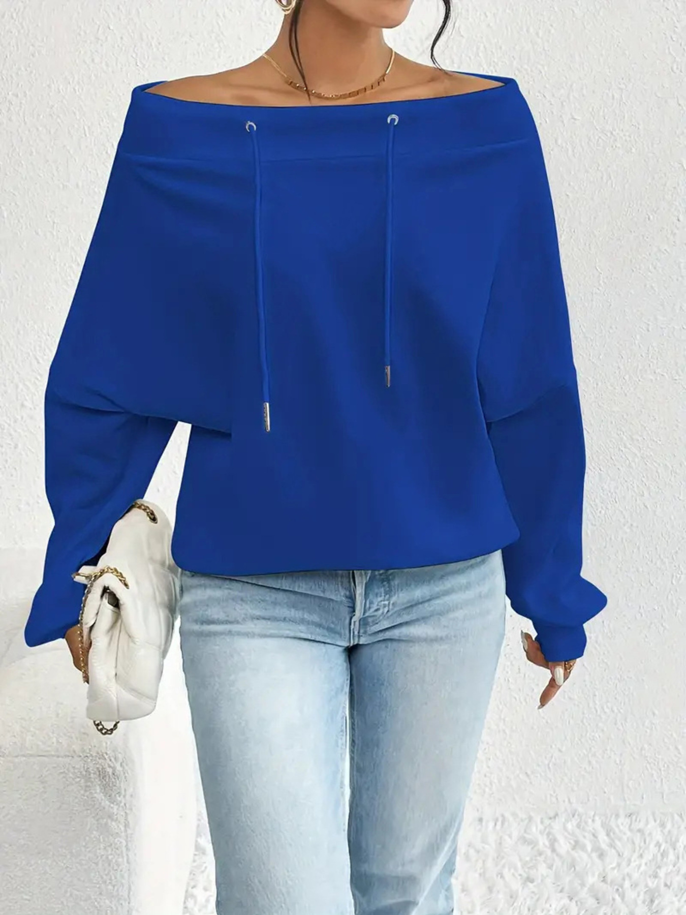 Full Size Off-Shoulder Drawstring Long Sleeve Top Plus Size