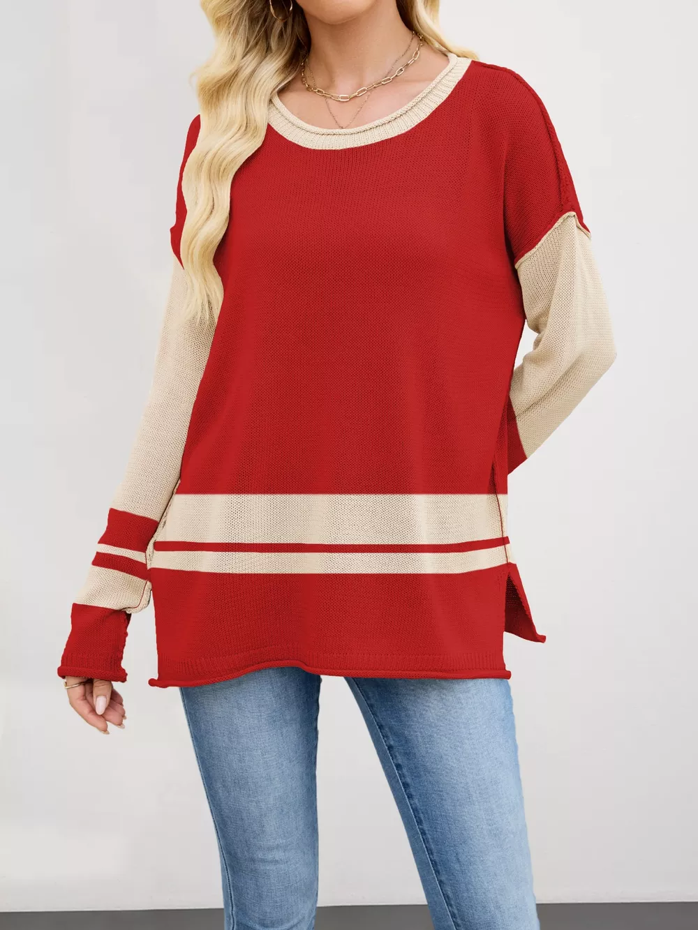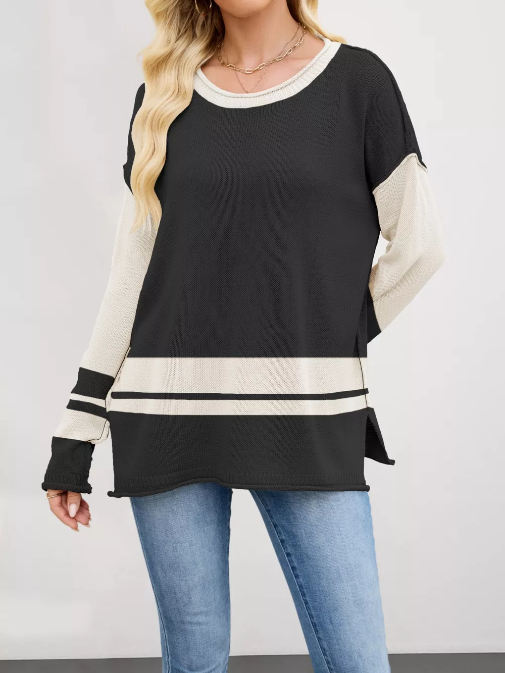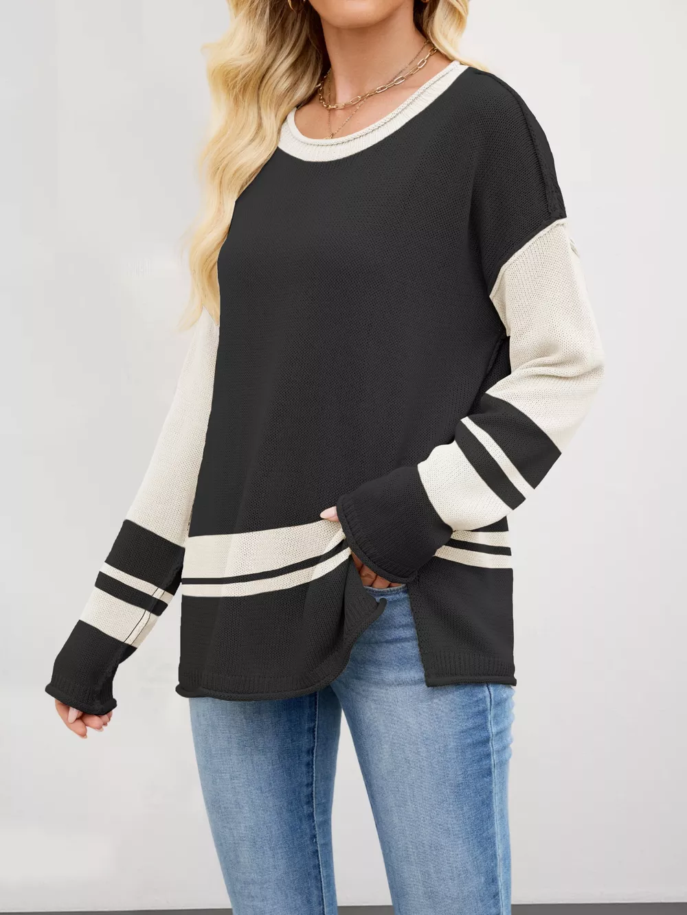 Color Block Side Slit Sweater