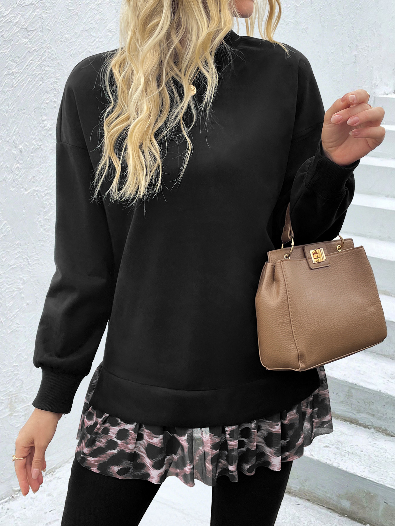 Camouflage Hem Detail Round Neck Sweatshirt