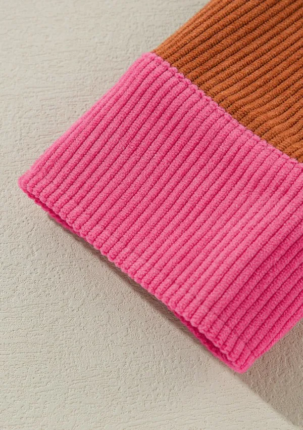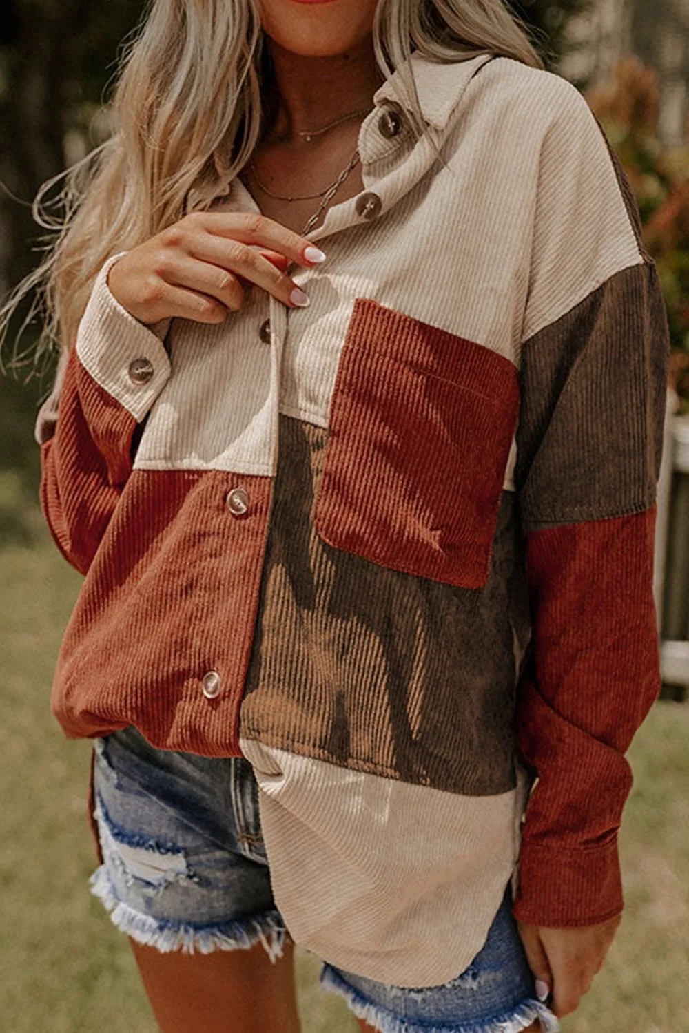 Color Block Curved Hem Corduroy Shacket With Pocket
