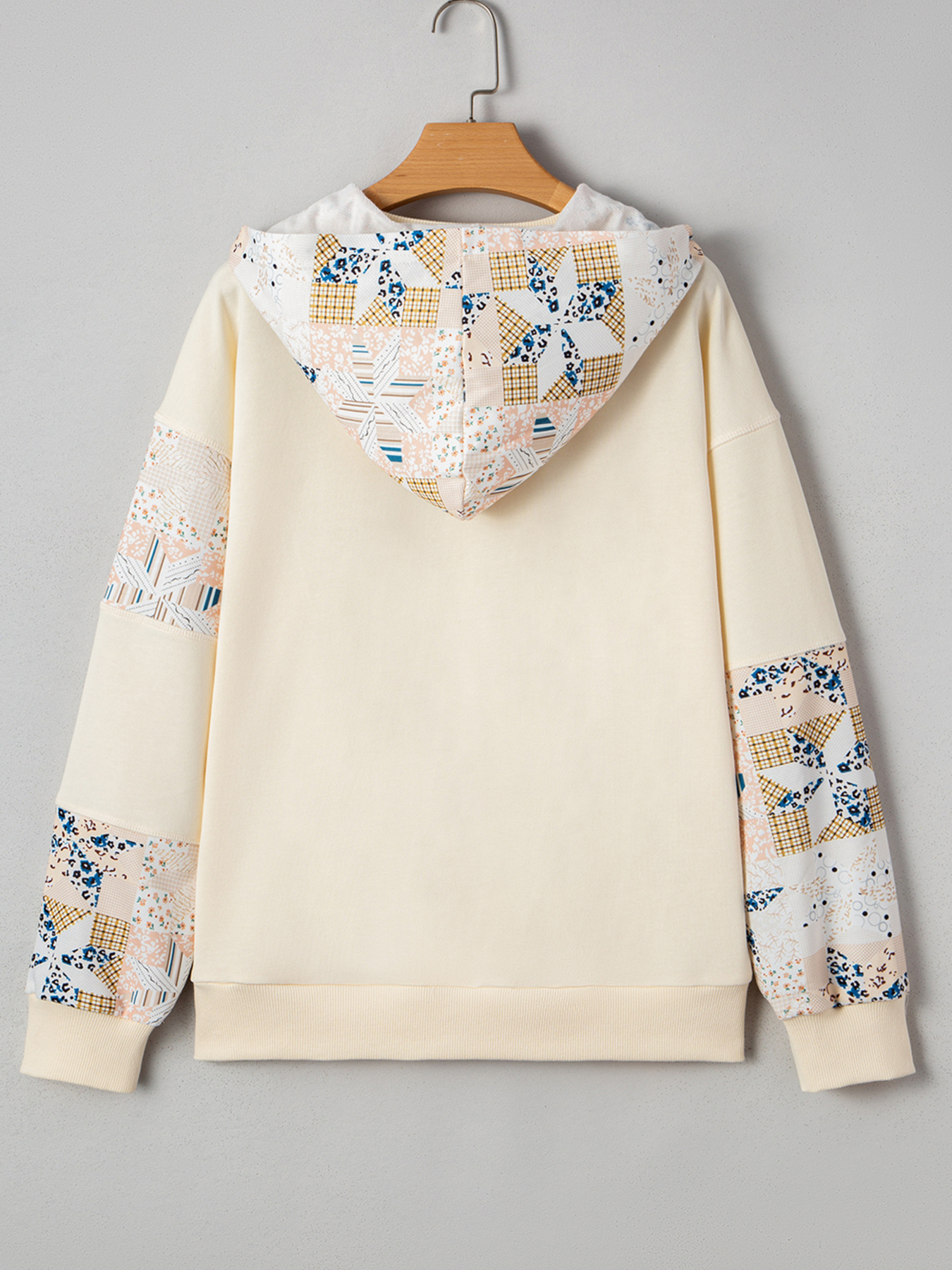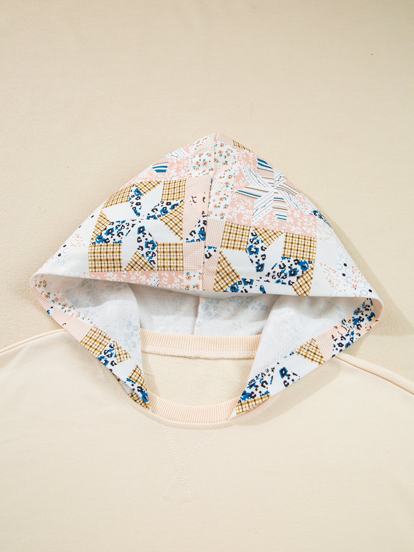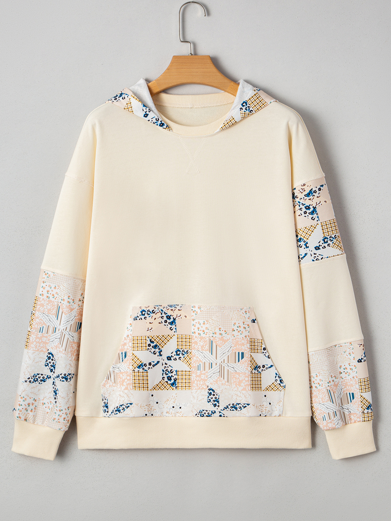 Geo Pattern Patchwork Hoodie With Kangaroo Pocket