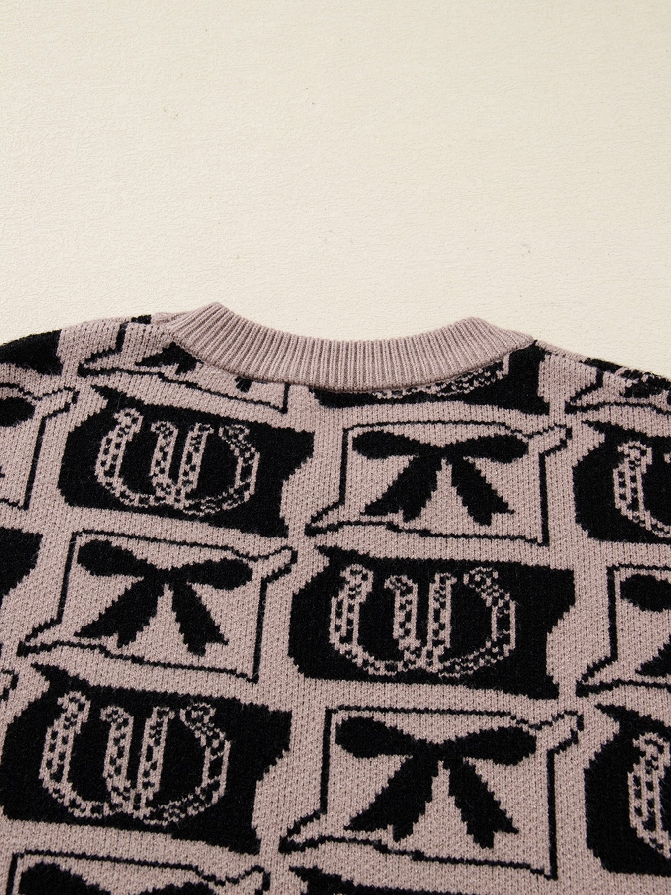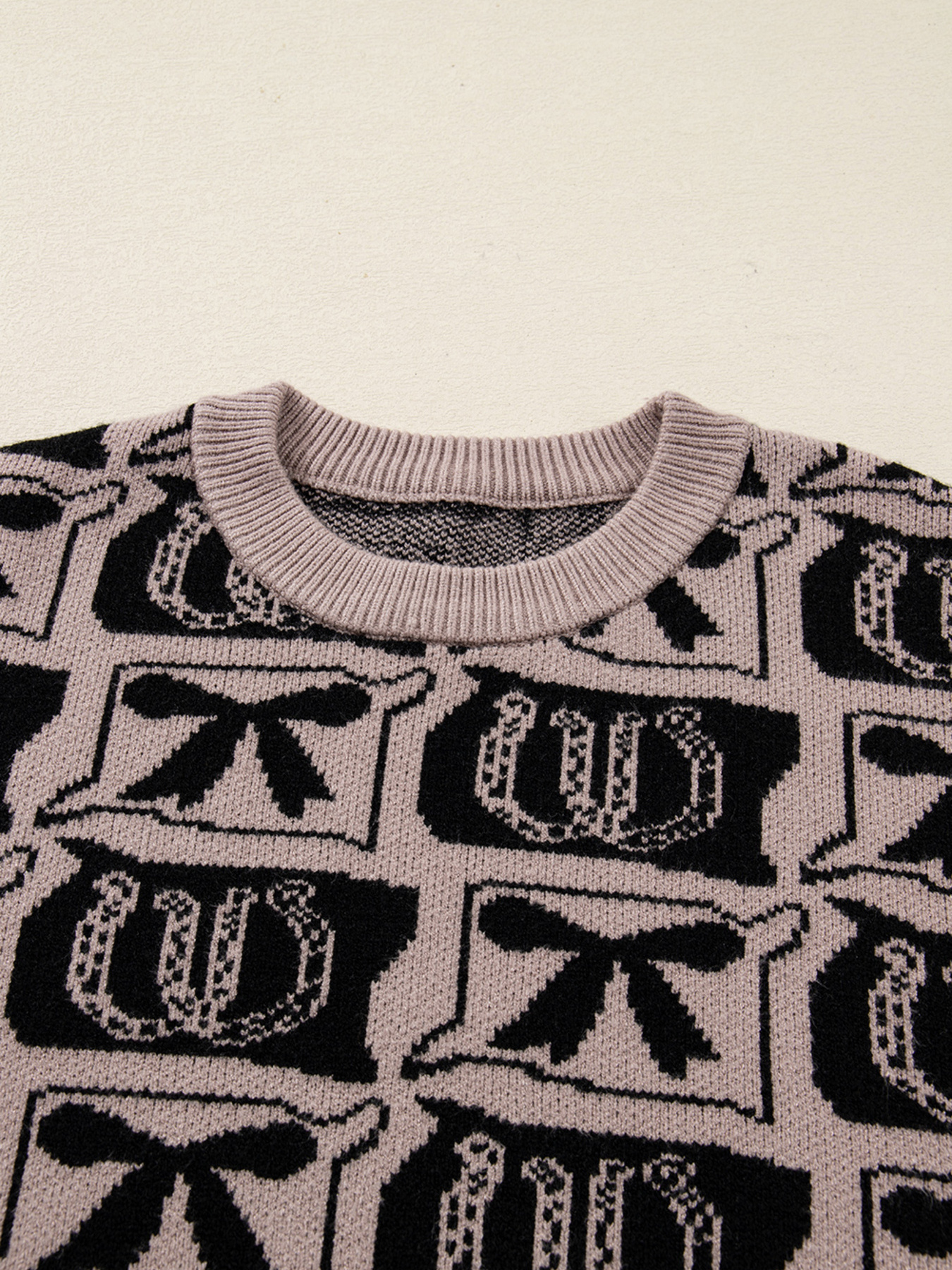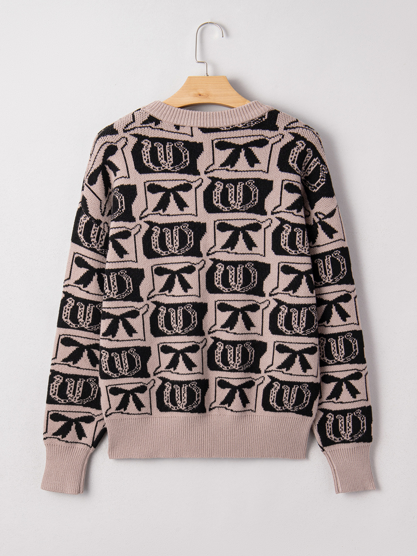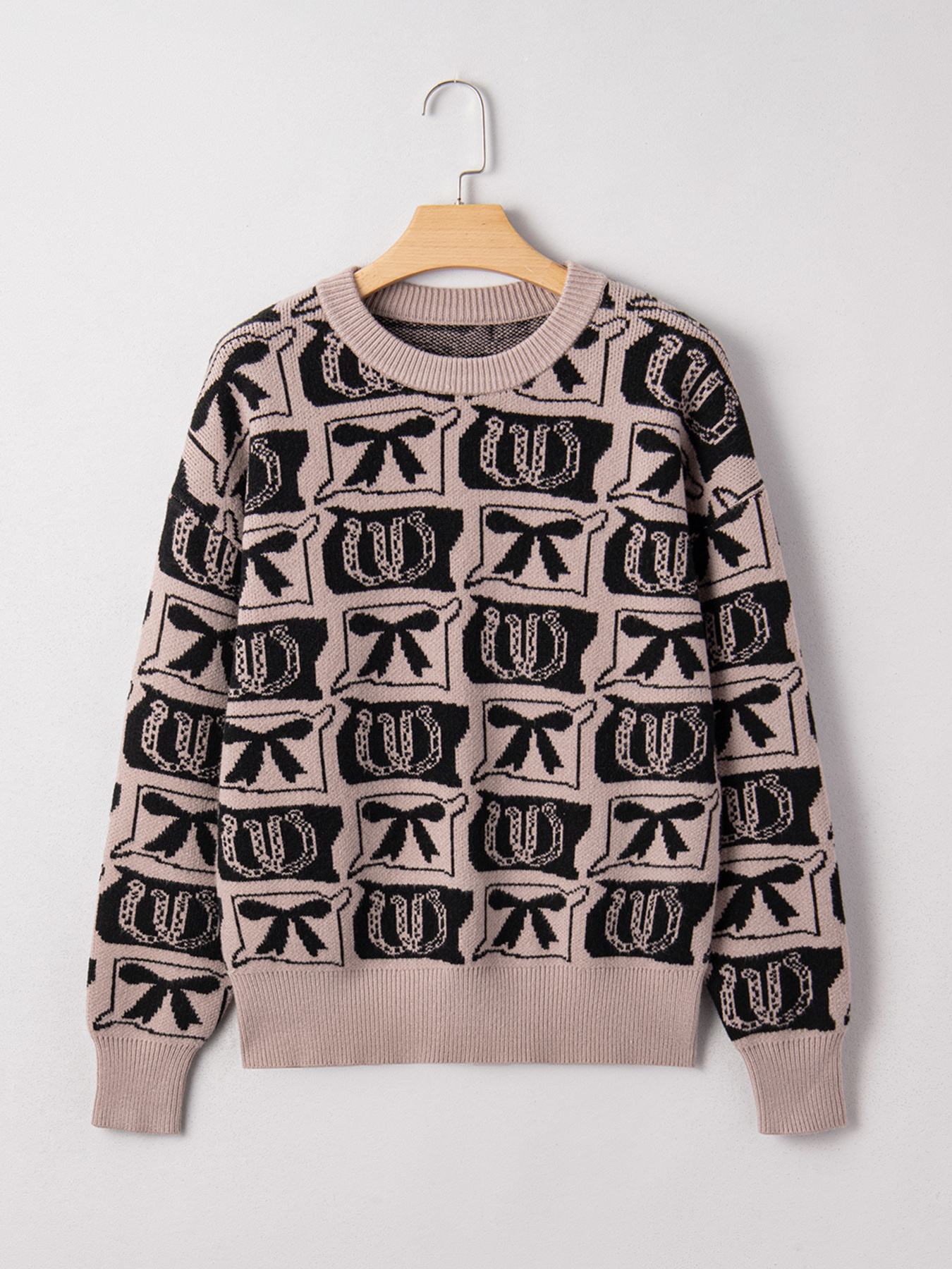 Bows & Horseshoes Pattern Round Neck Sweater