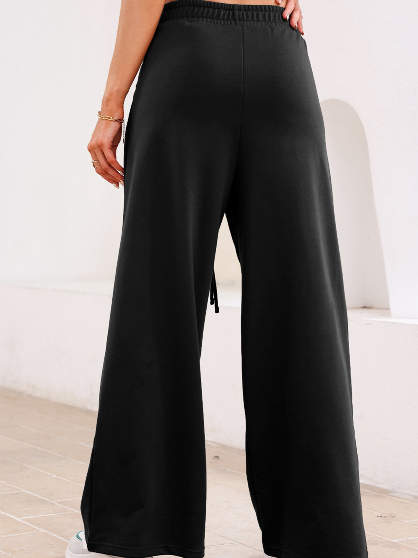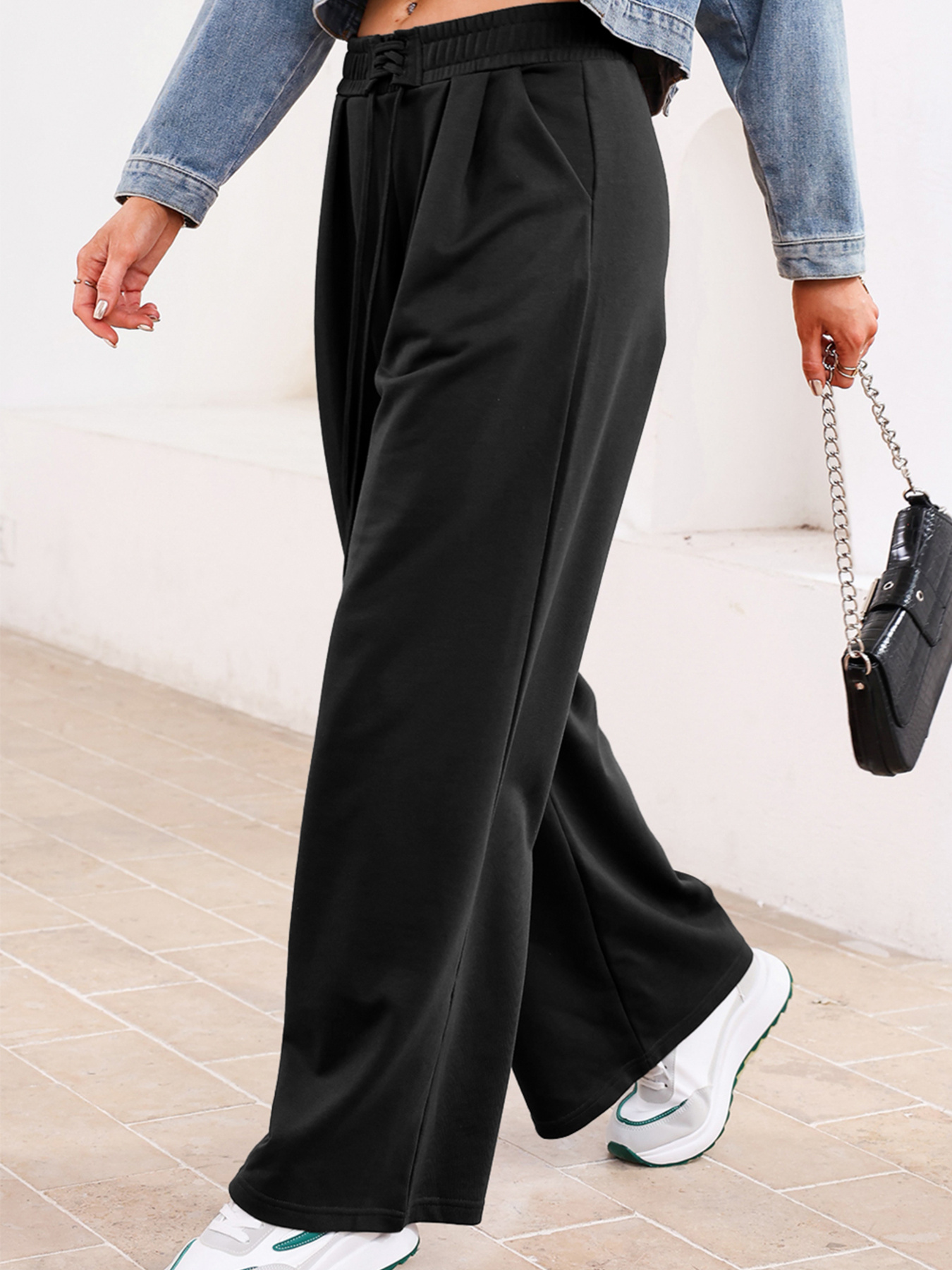 Tied Elastic High Waist Pleated Detail Solid Sweatpants