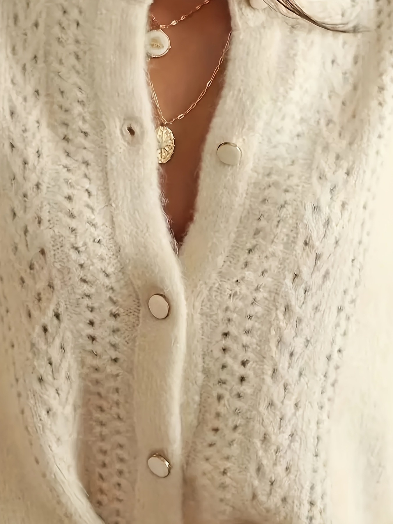 Button-Down Eyelet Long Sleeve Cardigan