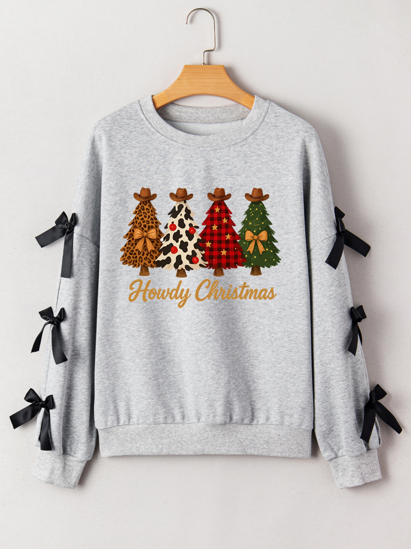 Howdy Christmas 4 Trees Ribbon Bow Decor Sweatshirt