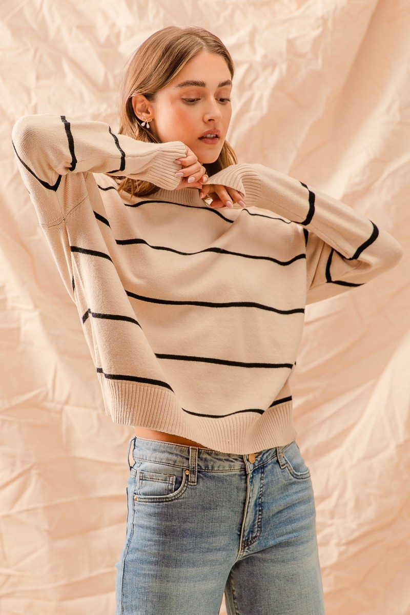 So Me Stripe Crew Neck Basic Essential Sweater