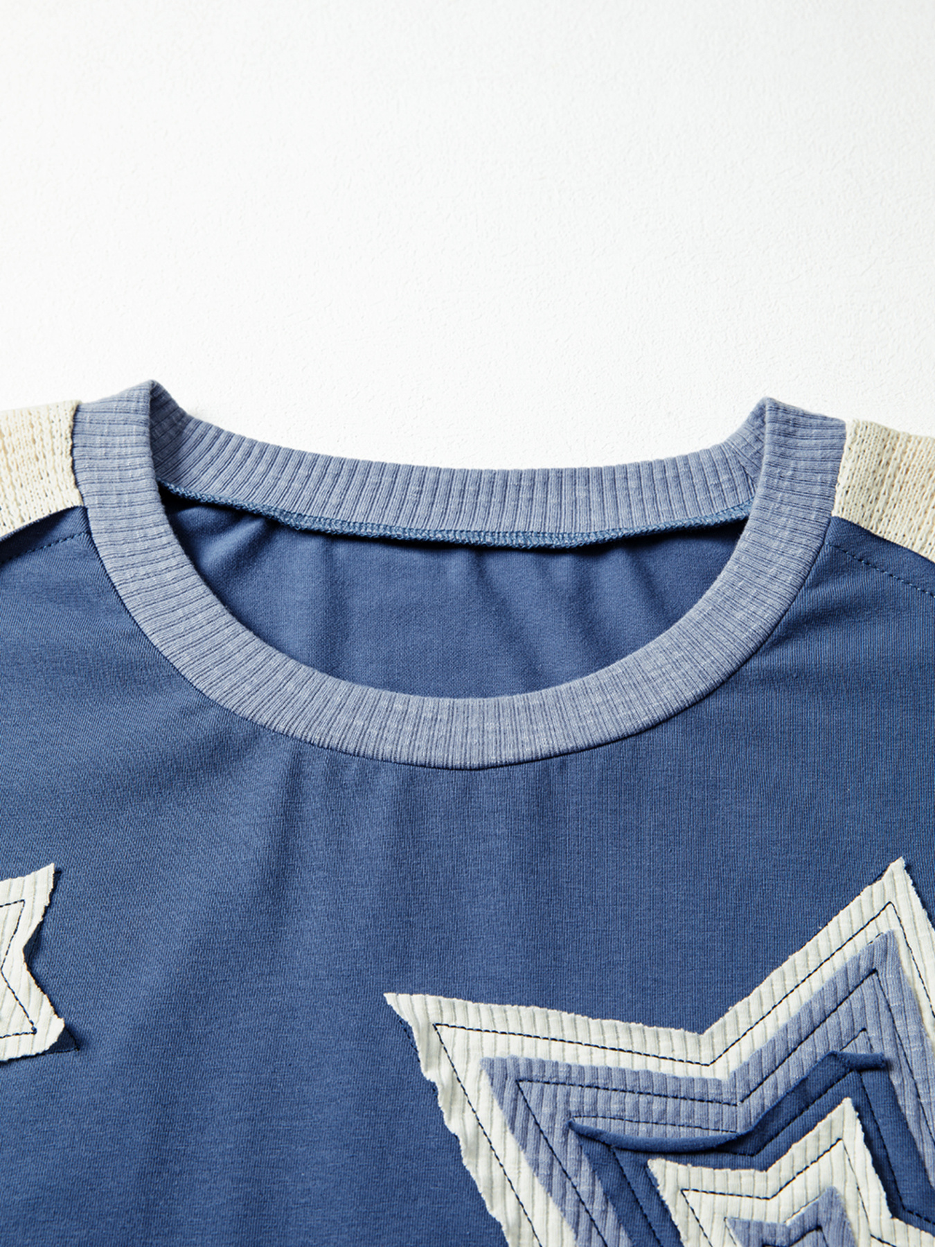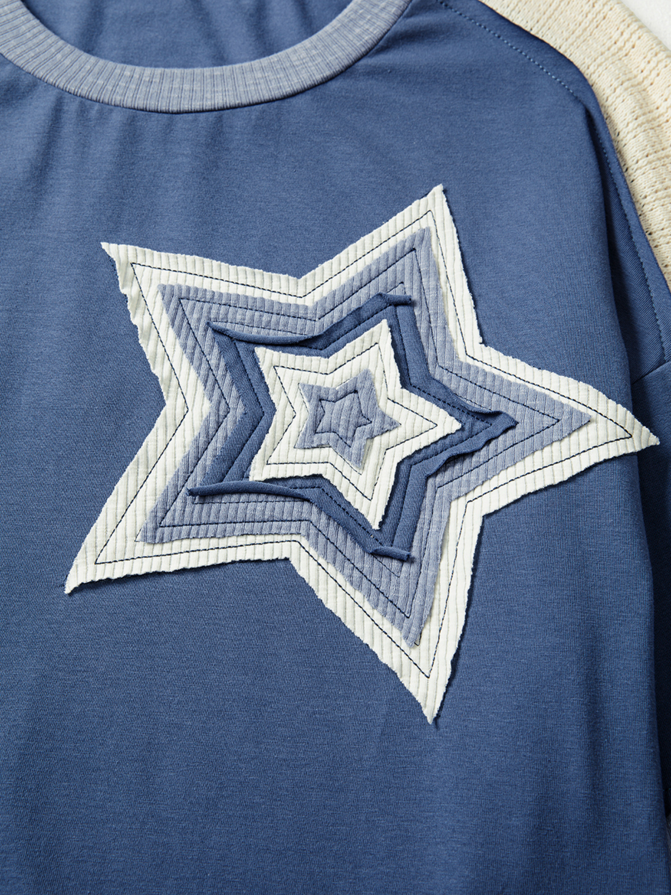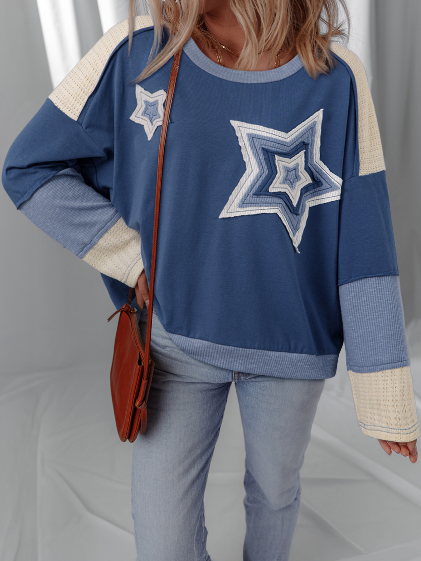 Contrast Knitted Colorblock Star Patchwork Oversize Long Sleeve Top