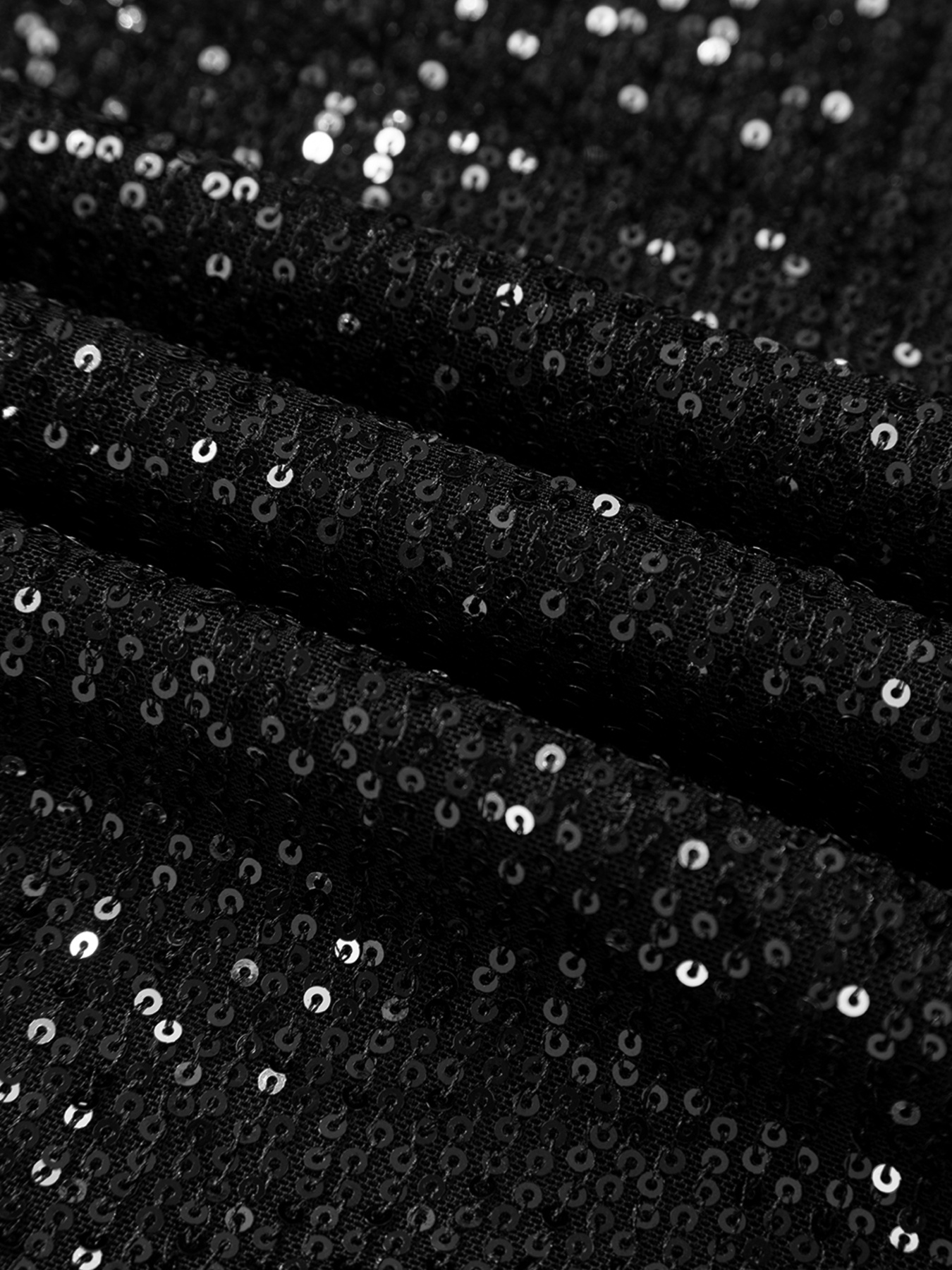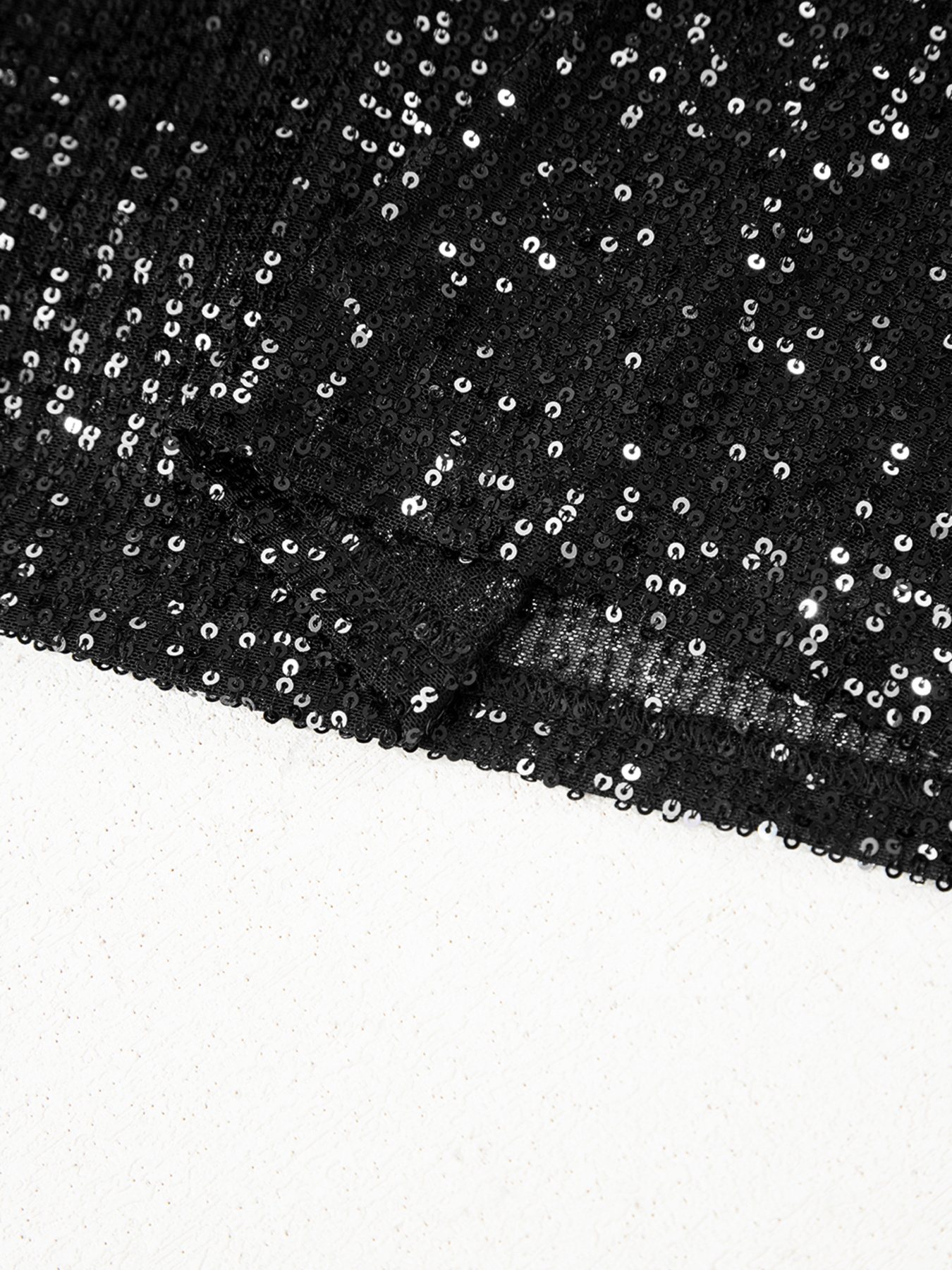 Sequin Mock Neck Drape Open Back Bell Sleeve Top