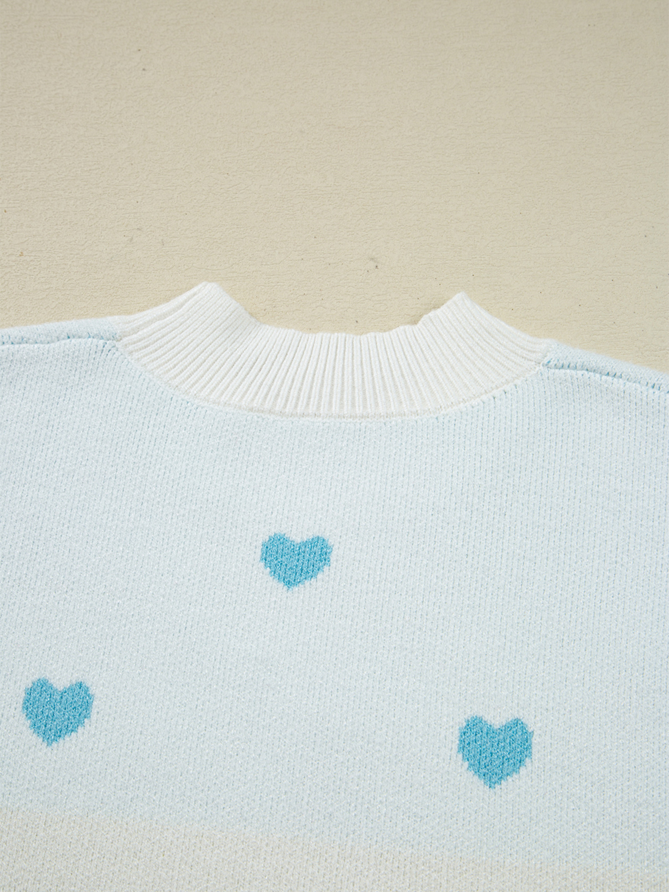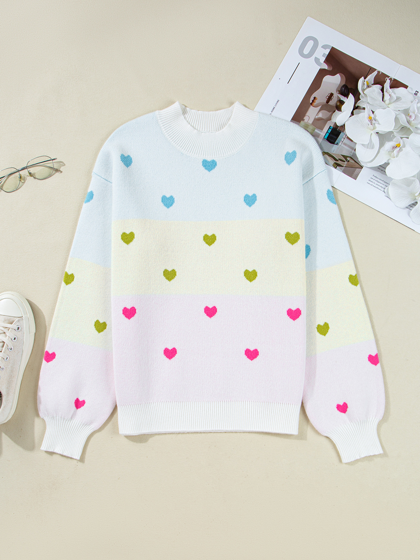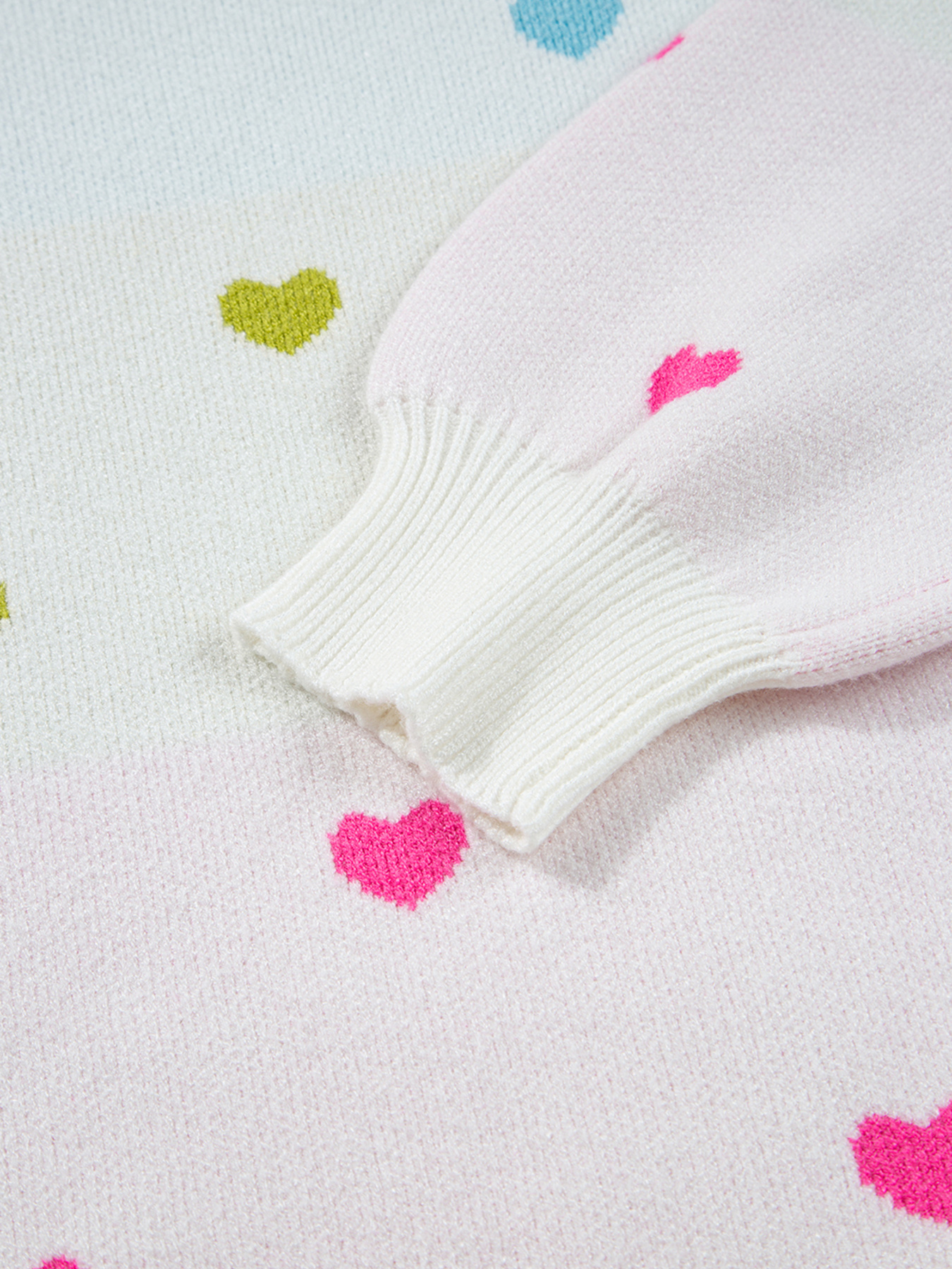 Multicolour Heart Pattern Dropped Shoulder Sweater