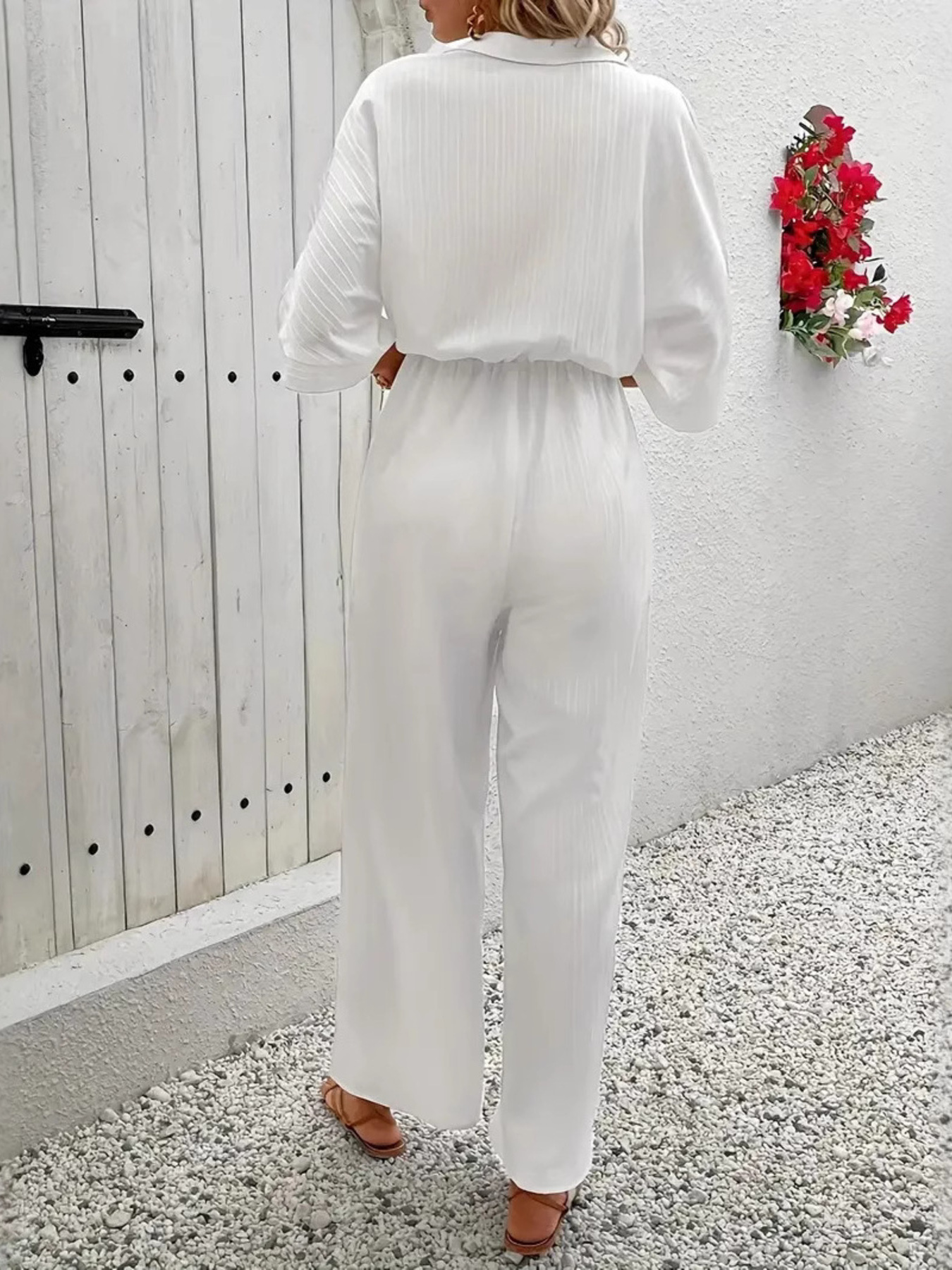 Button Front Half Sleeve Wide Leg Jumpsuit