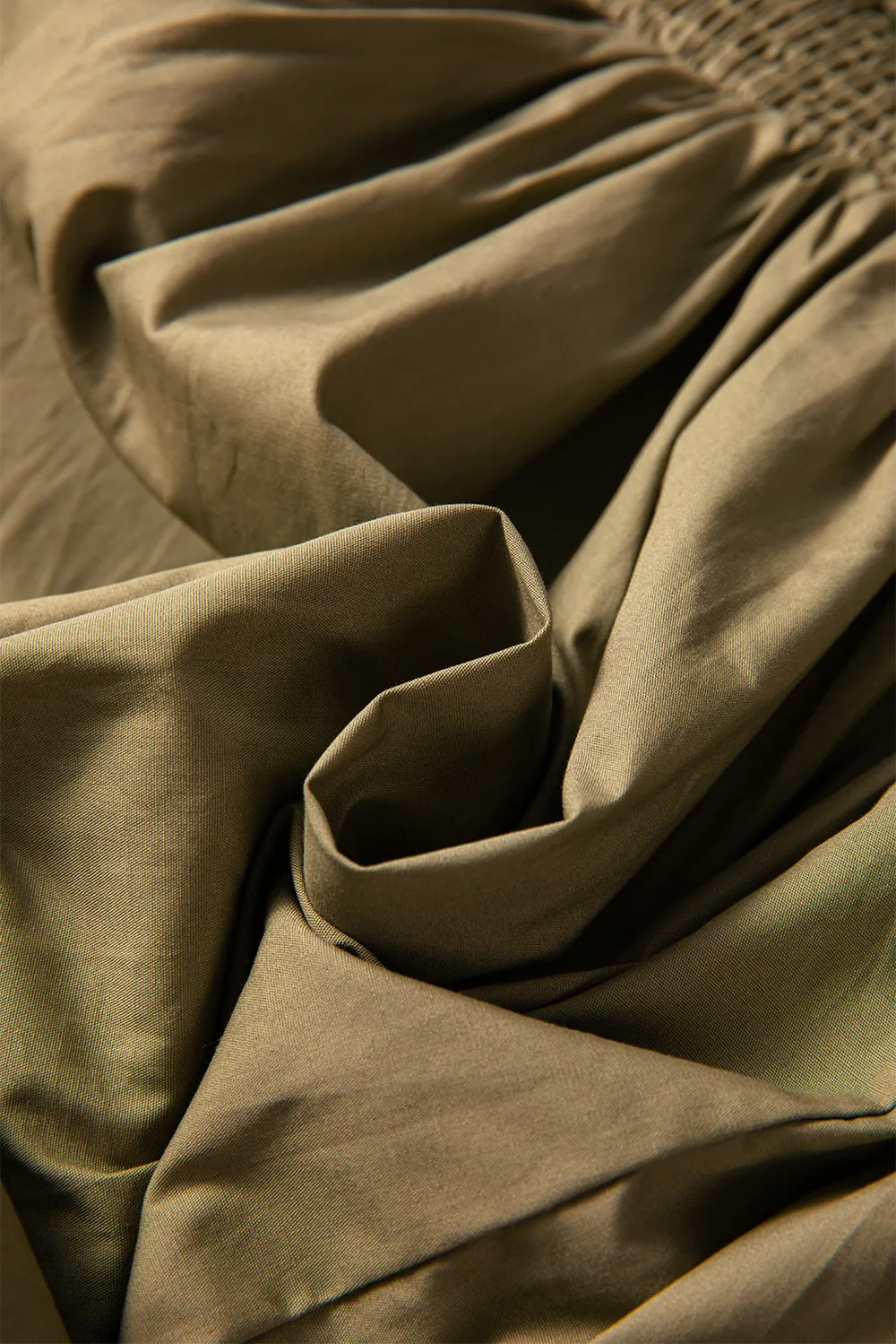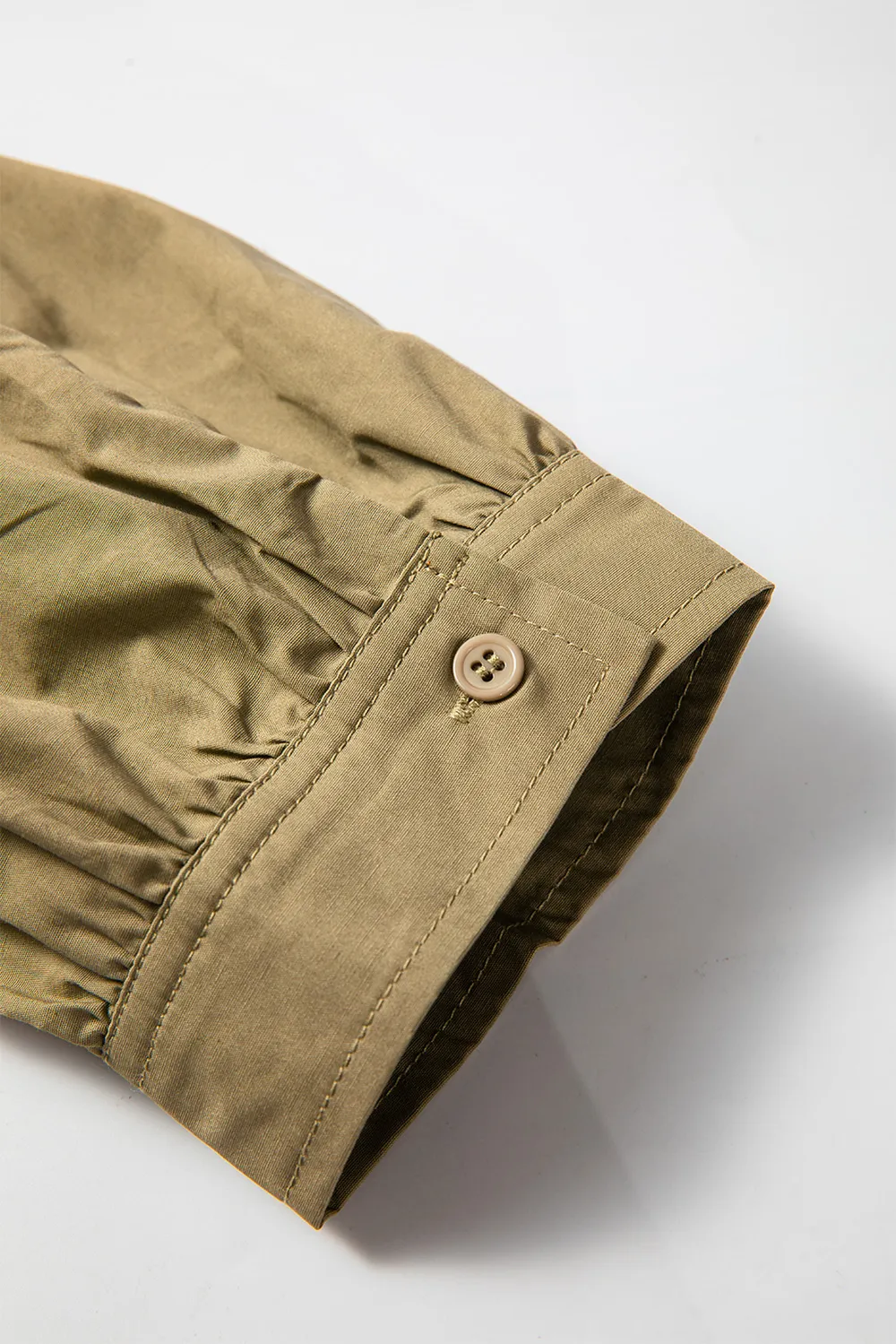 Smocked Johnny Collar Three-Quarter Sleeve Mini Dress