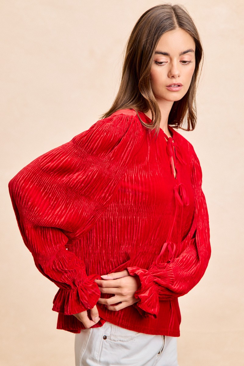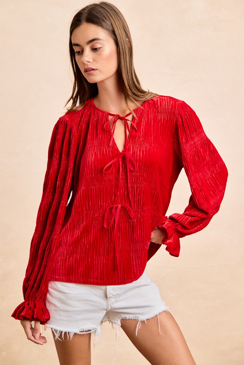 Bibi Christmas Theme Velvet Bow Tied Top With Neck Drop
