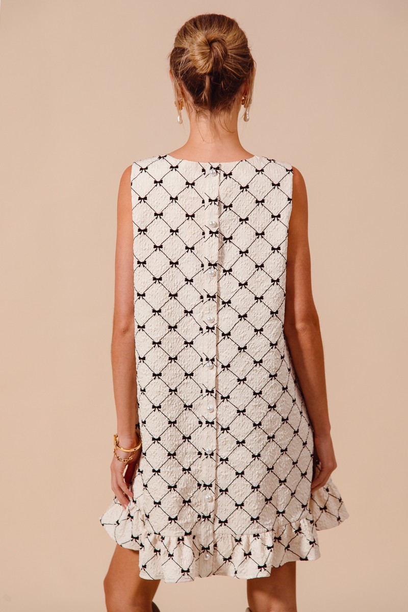 So Me Texture Bow Printed Mini Ruffle Dress