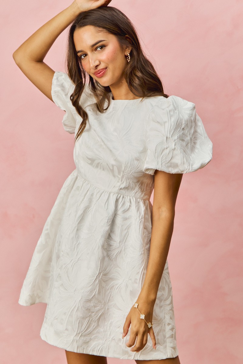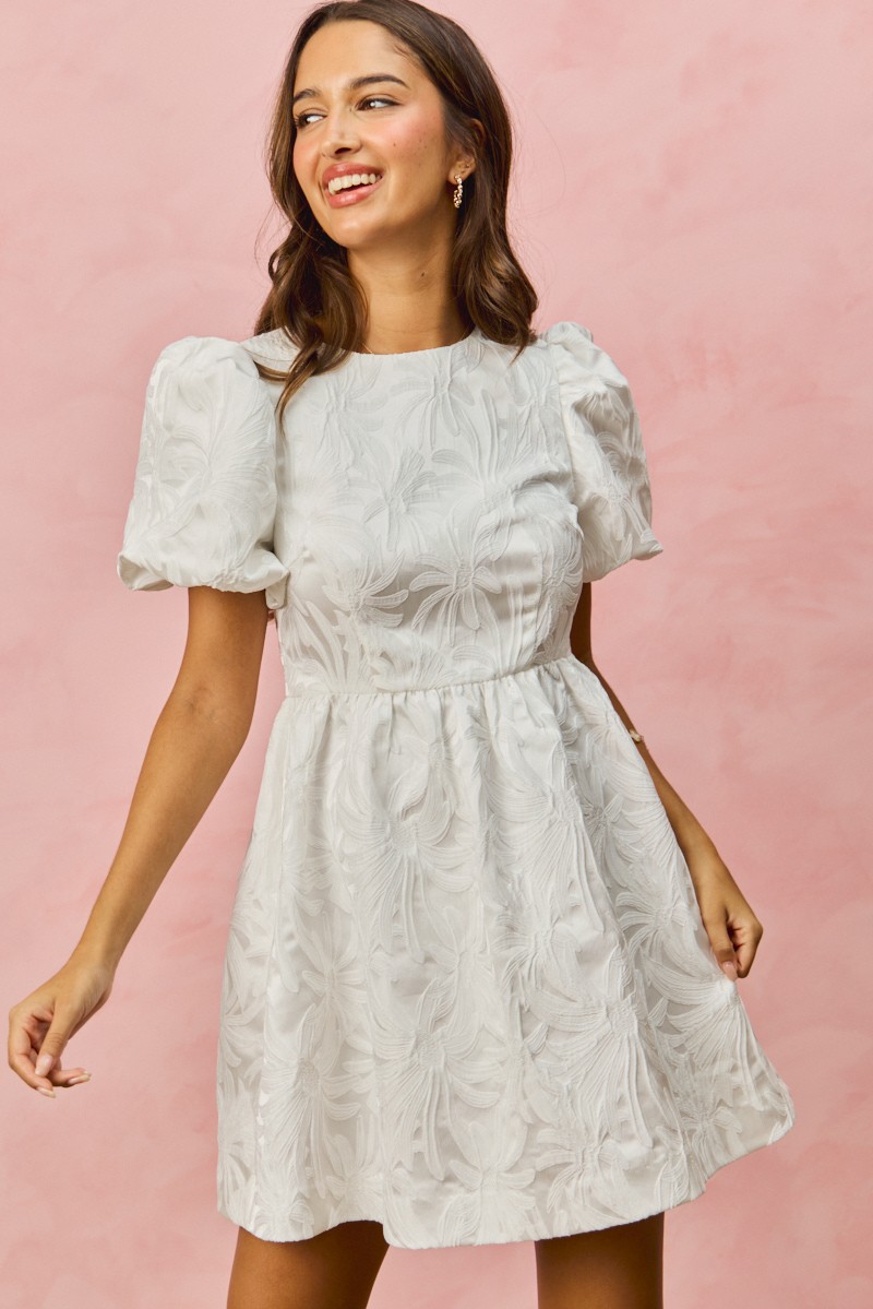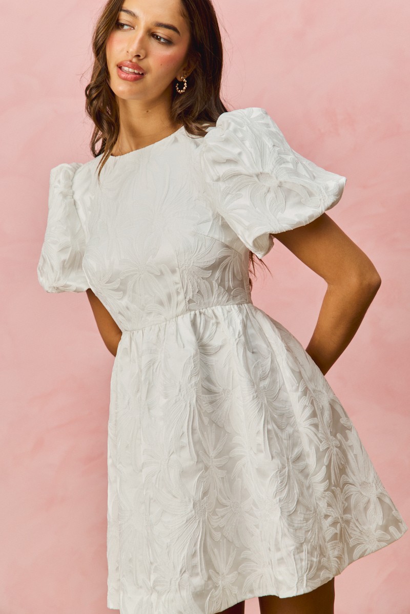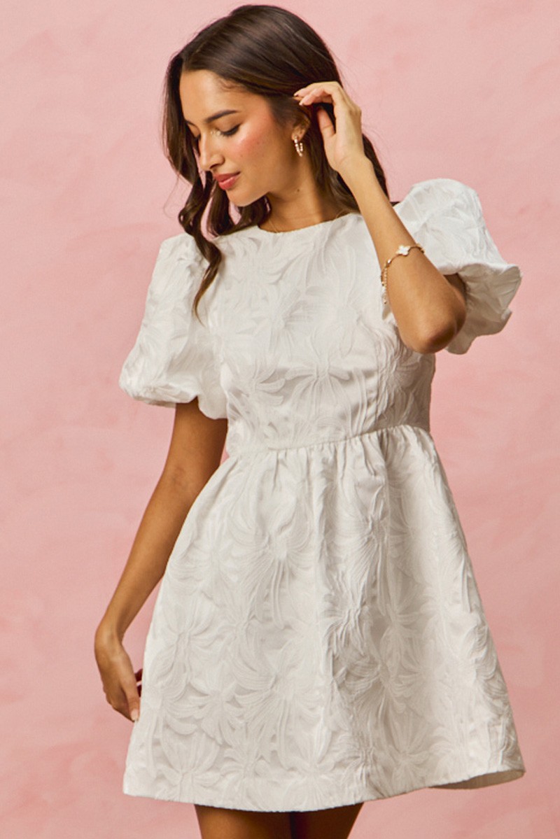 So Me Floral Jacquard Bubble Shorts Sleeves Mini Dress