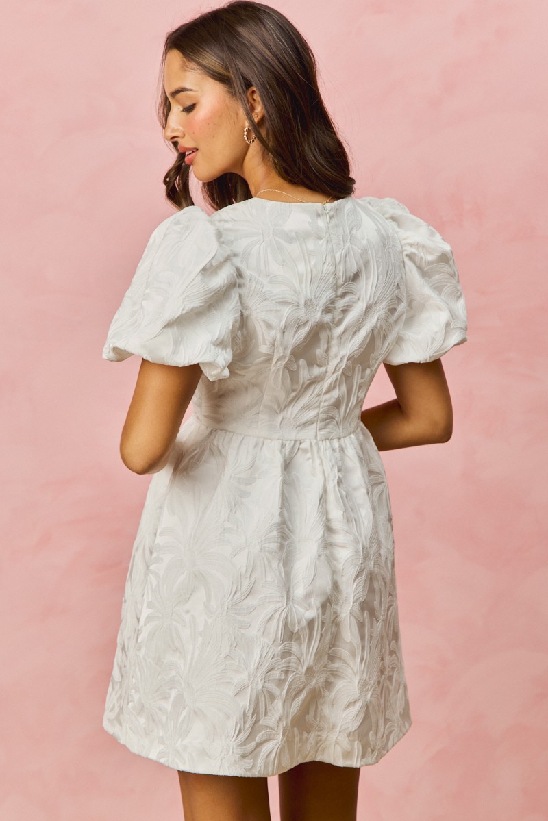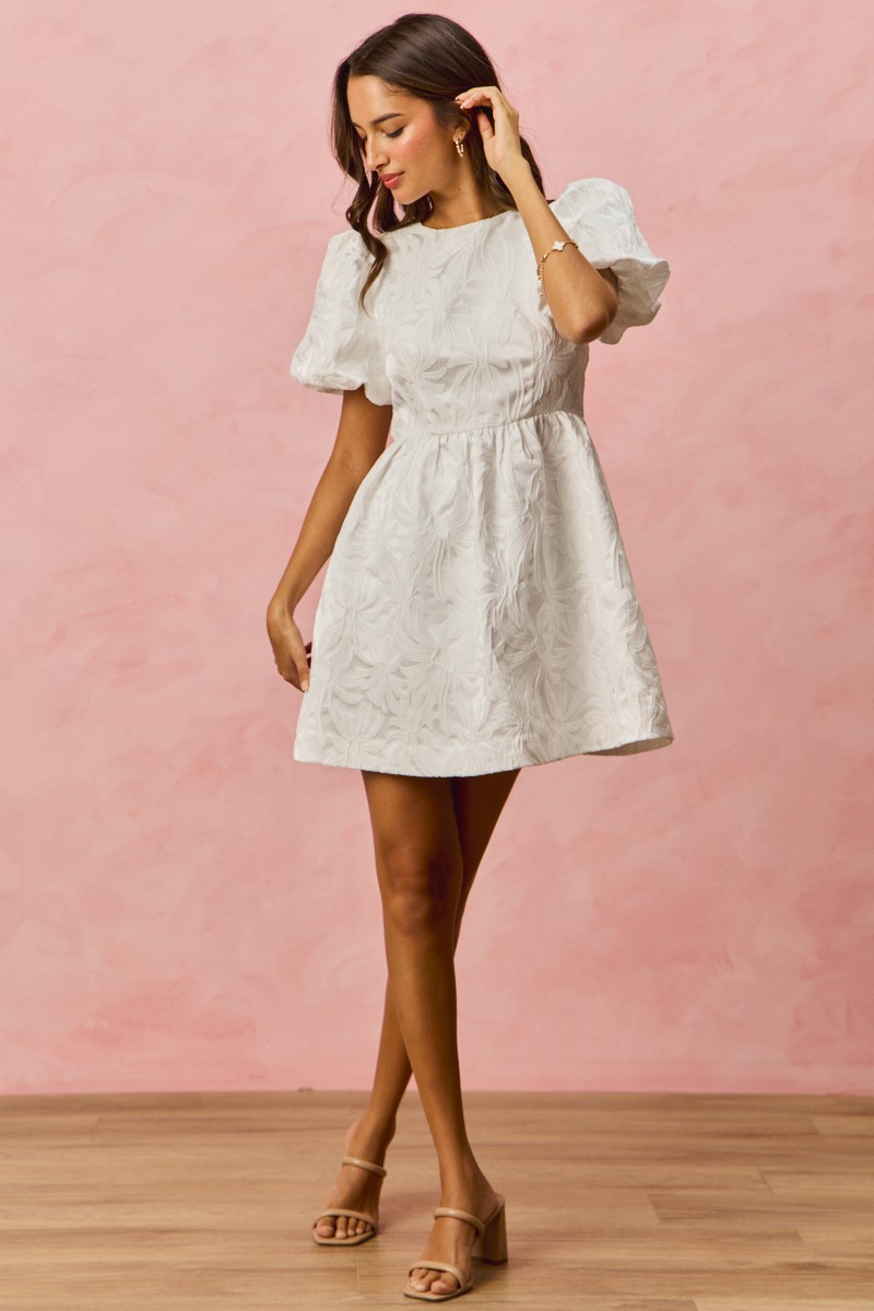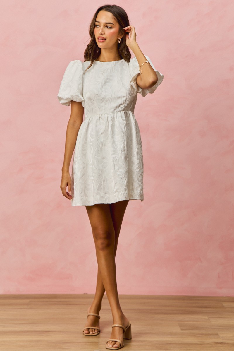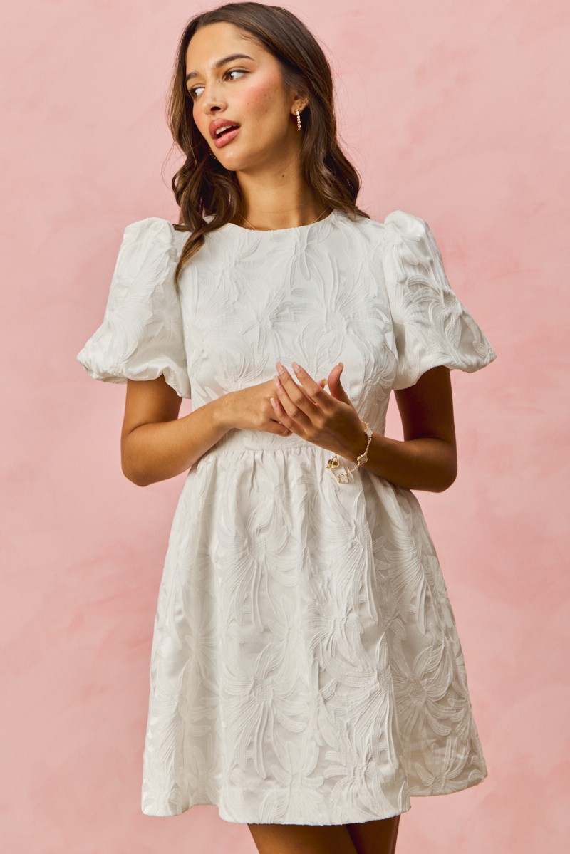 So Me Floral Jacquard Bubble Shorts Sleeves Mini Dress