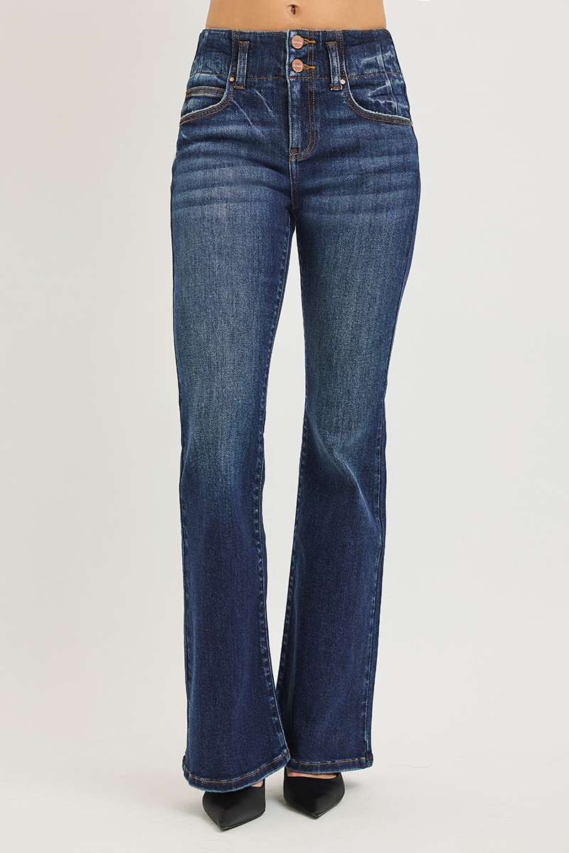 Risen High Rise Flare Jeans With Seam Detail Waistband