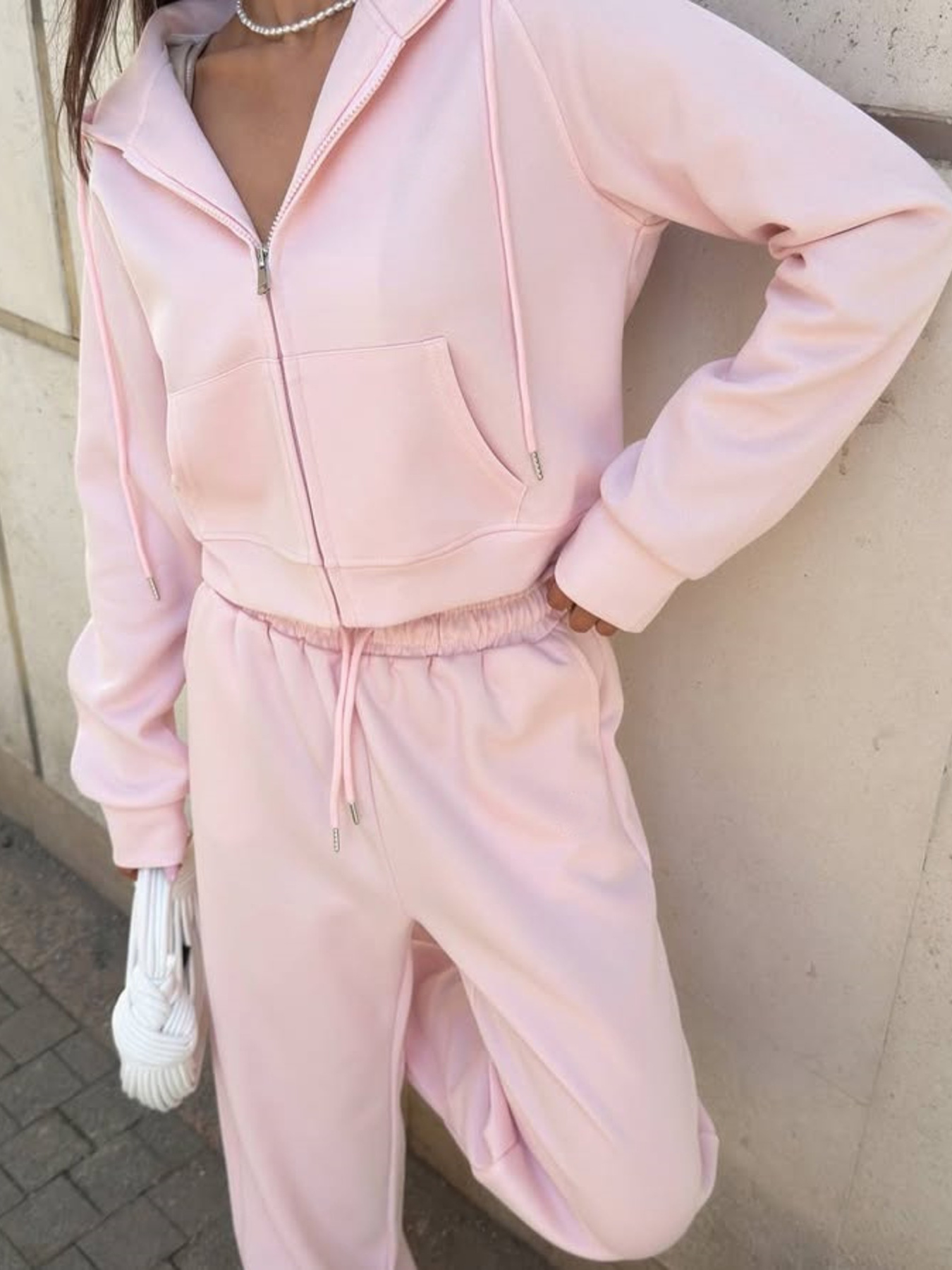 Zip Up Drawstring Hoodie And Pants Set